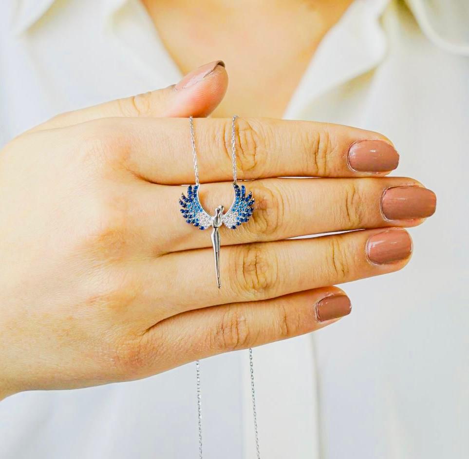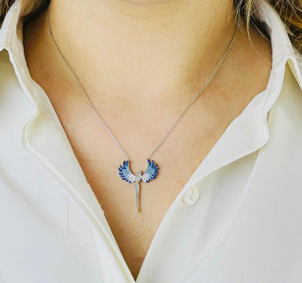 Description This elegant Angel Necklace with a color gradient design is crafted from 925 sterling silver with a polished finish. Symbolizing grace and beauty, it’s a unique accessory perfect for everyday wear or as a meaningful gift for someone special.