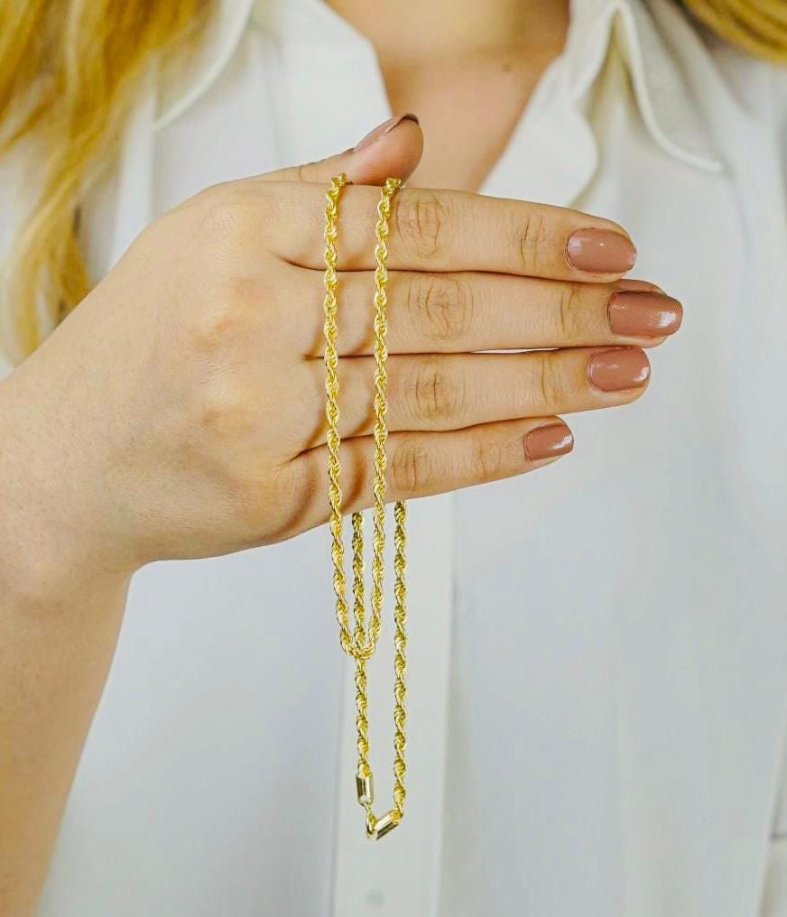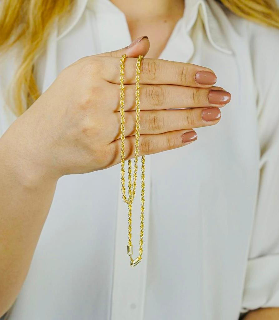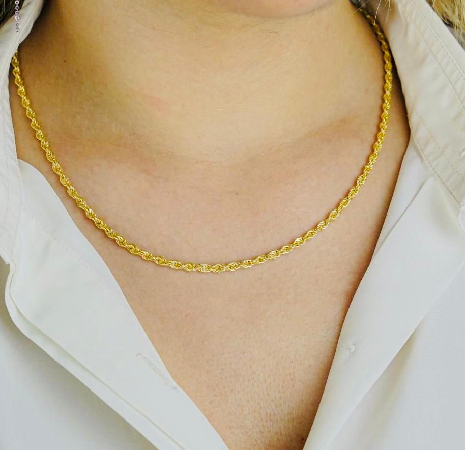 Description Add timeless style with this Sterling Silver Gold Plated Rope Chain Necklace. Measuring 3 mm in width and 54 cm in length, it’s crafted from 925 sterling silver with a polished finish. A versatile chain that works perfectly on its own or paired with a pendant