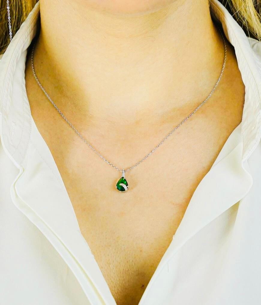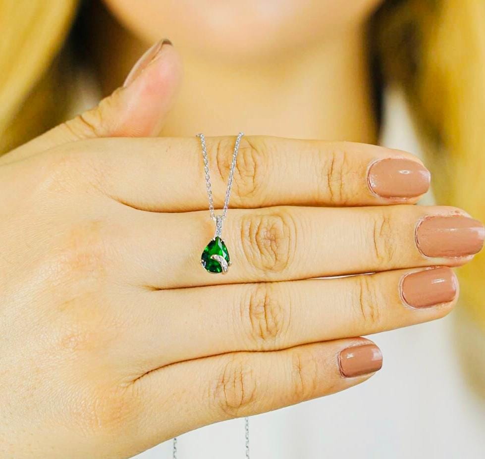 Description Inspired by nature’s beauty, this Emerald Green Zircon Teardrop Necklace is crafted from 925 sterling silver with a polished finish. Its vibrant green sparkle makes it a meaningful and stylish accessory for both everyday wear and special occasions.