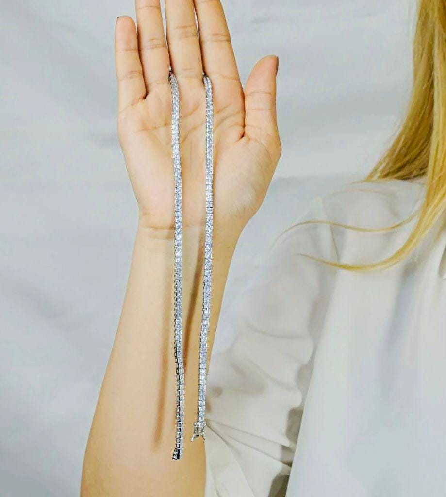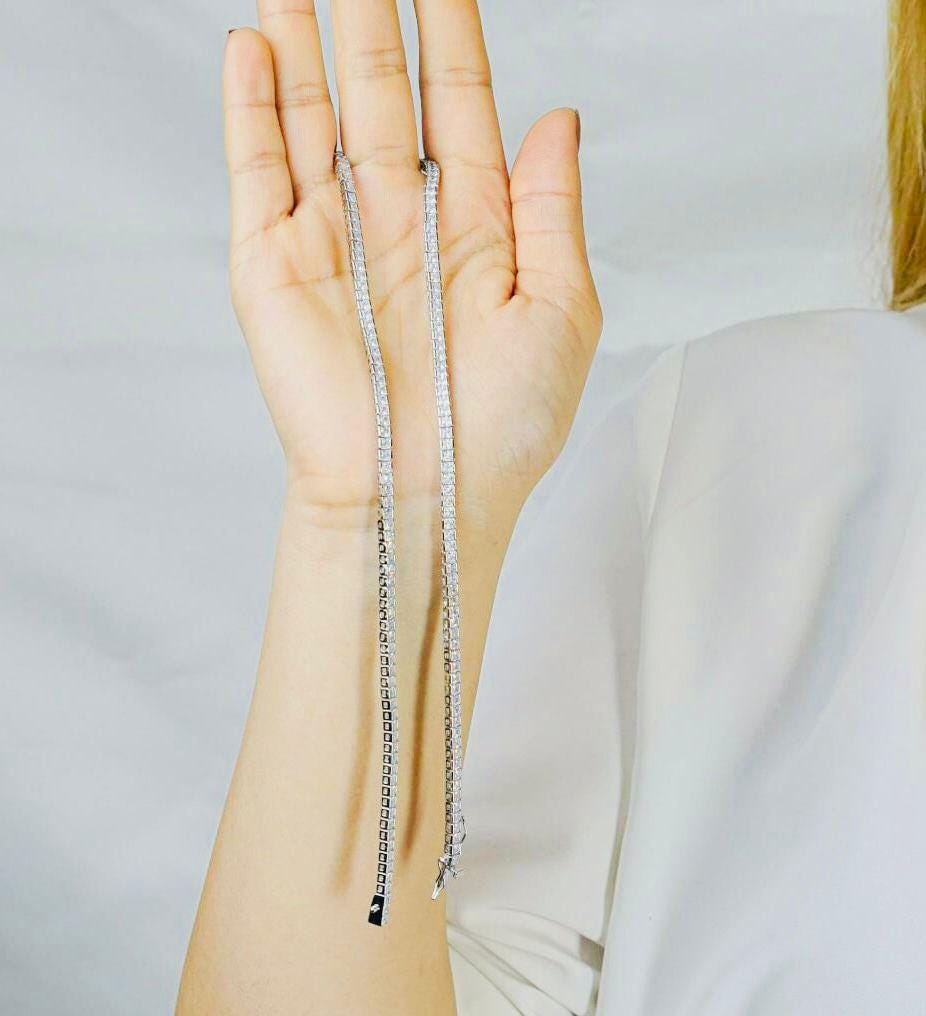 925 Sterling Silver Tennis Necklace – Square Diamond Style Chain, 50 cm, 4 mm
