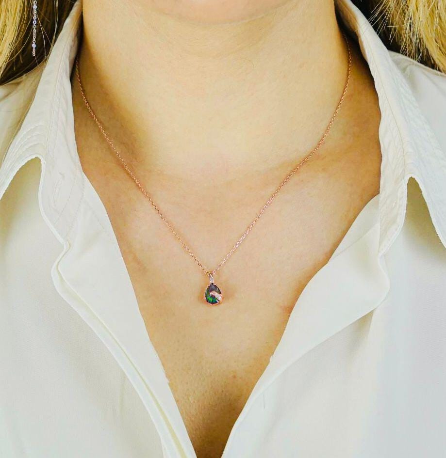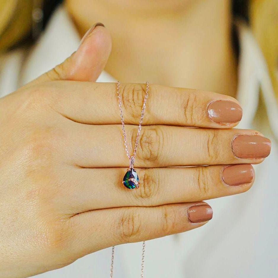 Shimmering with rainbow-like colors, this Mystic Topaz Teardrop Necklace is crafted from 925 sterling silver with a polished finish. Its elegant design makes it a versatile accessory, perfect for both everyday wear and special occasions.