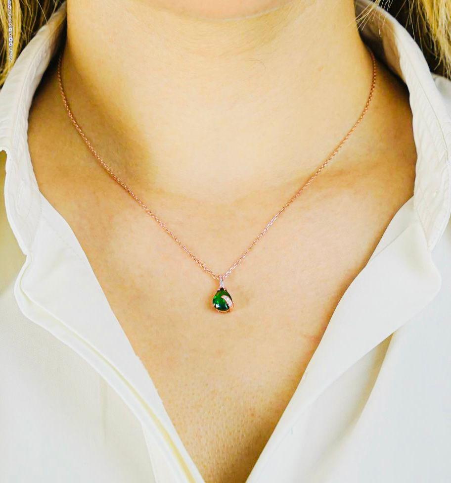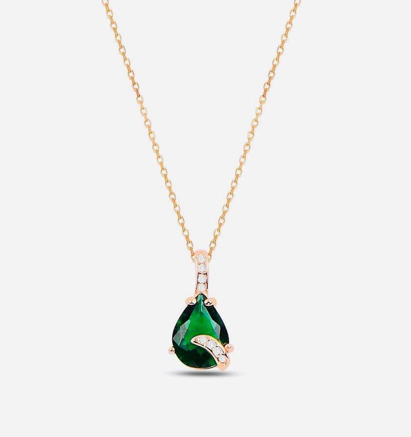 Description Make a statement with this Emerald Green Zircon Teardrop Necklace crafted from 925 sterling silver and plated in rose gold. Its sparkling design and rich green color bring elegance and charm, perfect for both everyday wear and special occasions.