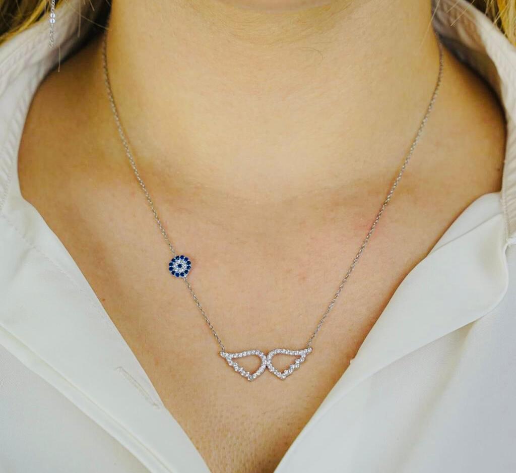 Description This elegant Sterling Silver Angel Wing Necklace with Evil Eye symbolizes both protection and grace. Lightweight and stylish, it’s perfect for everyday wear or as a meaningful gift for someone special.