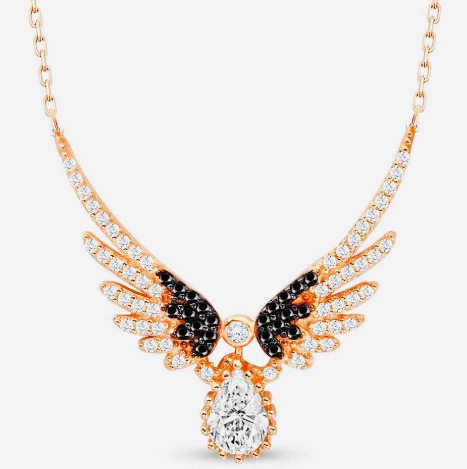 925 Sterling Silver Angel Wings Necklace with Teardrop Stone – Rose Gold Plated