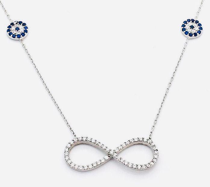 925 Sterling Silver Infinity Necklace with Evil Eye and Zircon Stones