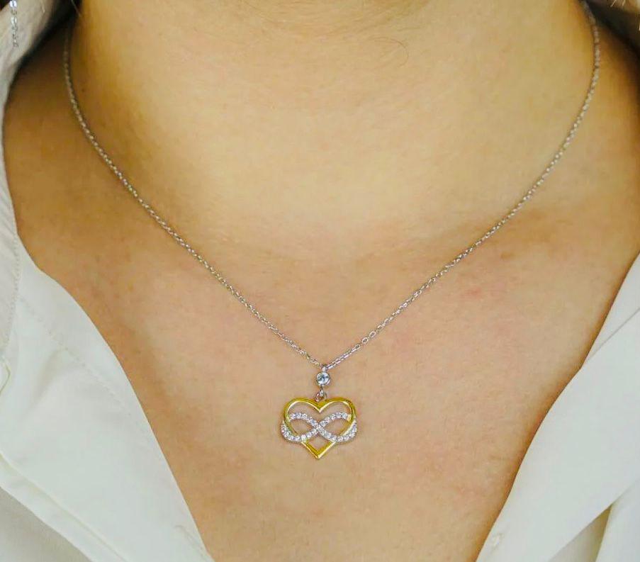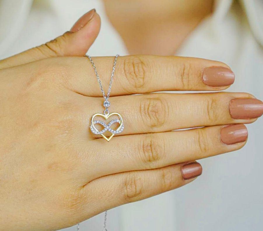 Description This elegant Infinity Heart Necklace symbolizes eternal love and connection. Crafted from 925 sterling silver and adorned with sparkling zircon stones, it’s perfect for everyday wear or as a meaningful gift for someone special. Ships quickly within 1–2 business days.