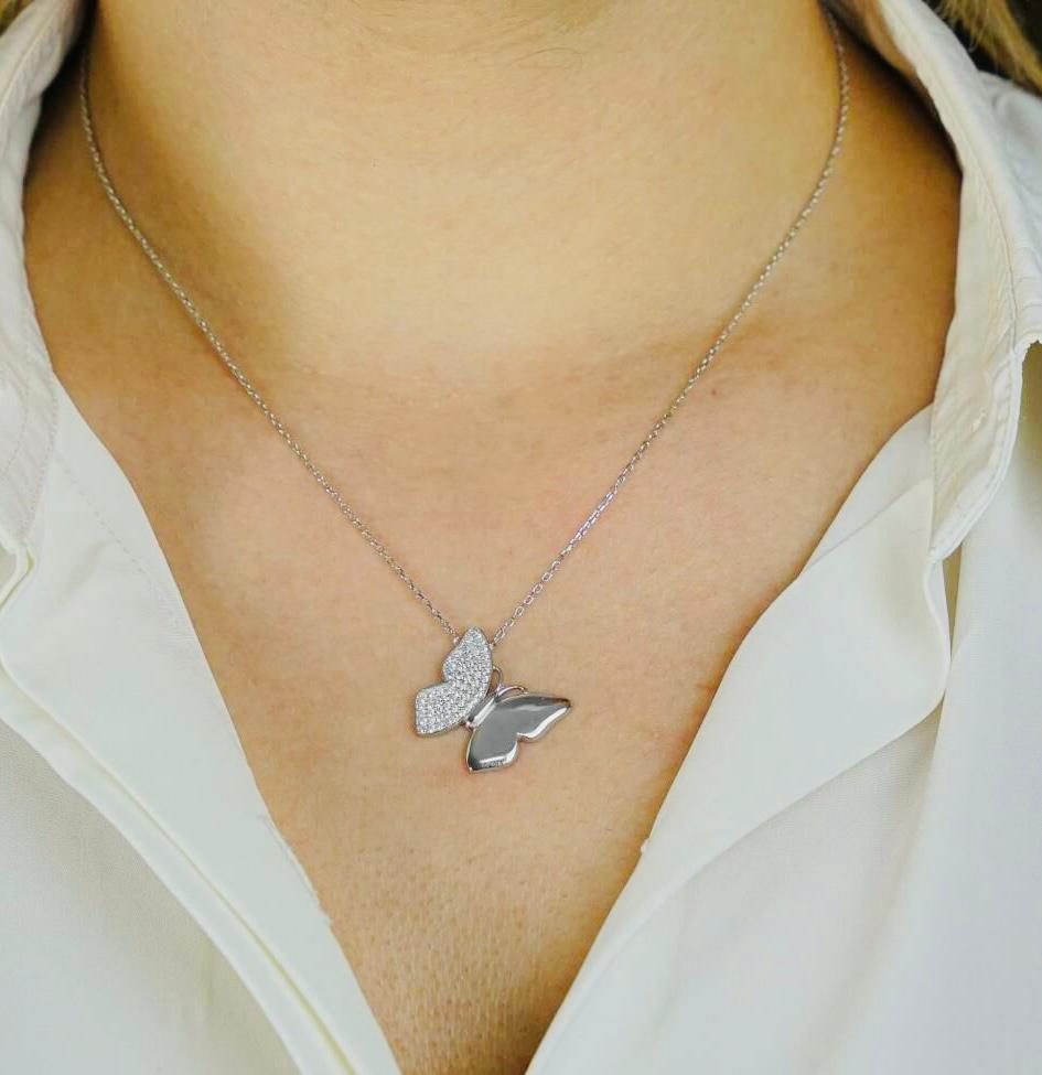 Description This elegant Butterfly Necklace with White Zircon stones is crafted from 925 sterling silver with a polished finish. Symbolizing freedom and beauty, it’s a timeless accessory perfect for everyday wear or as a thoughtful gift for someone special.