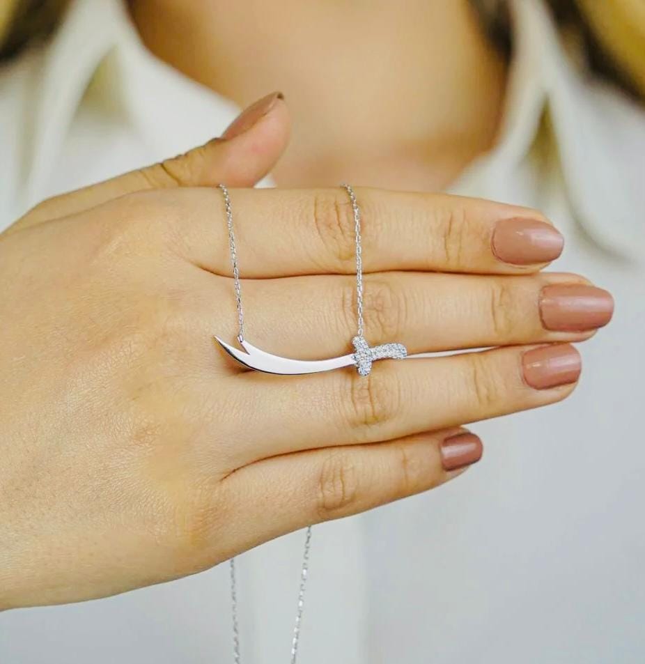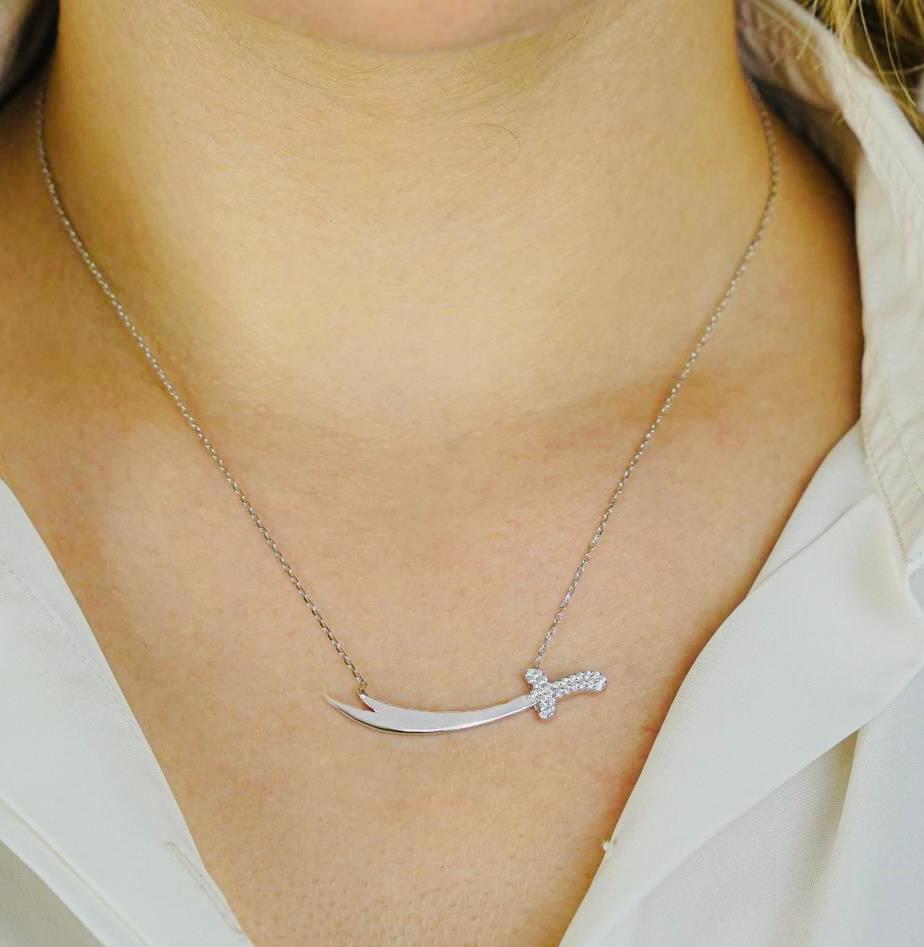 Description This meaningful Zulfiqar Sword Necklace with White Zircon stones is crafted from 925 sterling silver. A powerful symbol of strength and justice, it’s a unique accessory perfect for everyday wear or as a thoughtful gift for someone special.