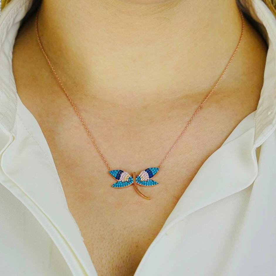 Description This elegant Dragonfly Necklace with colorful zircon stones is crafted from 925 sterling silver with a polished finish. Symbolizing freedom and beauty, it’s a unique accessory perfect for everyday wear or as a thoughtful gift for someone special.