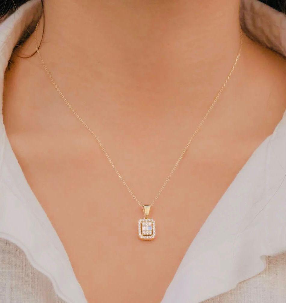 925 Sterling Silver Baguette Necklace – Gold Plated, Elegant Pendant