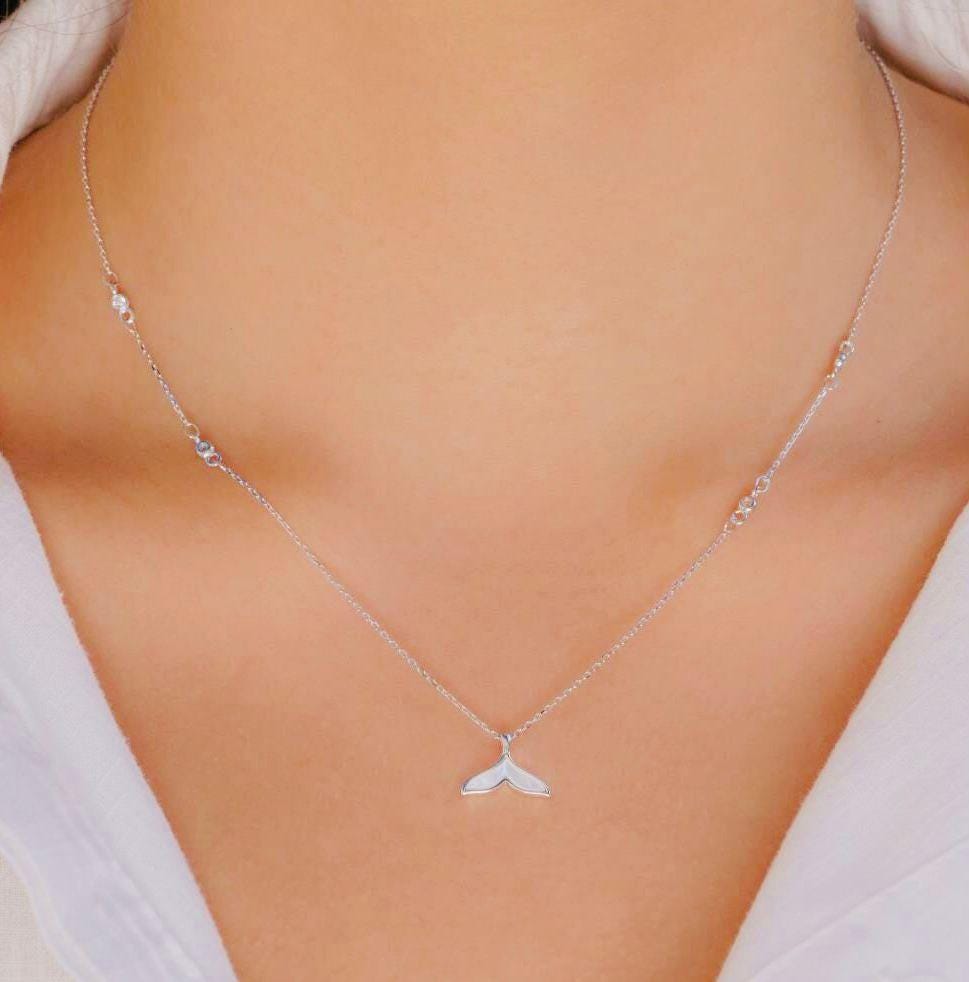 Description This elegant Whale Tail Necklace with Mother of Pearl is crafted from 925 sterling silver with a polished finish. A delicate design symbolizing freedom and harmony with nature, perfect for everyday wear or as a thoughtful gift for someone special.