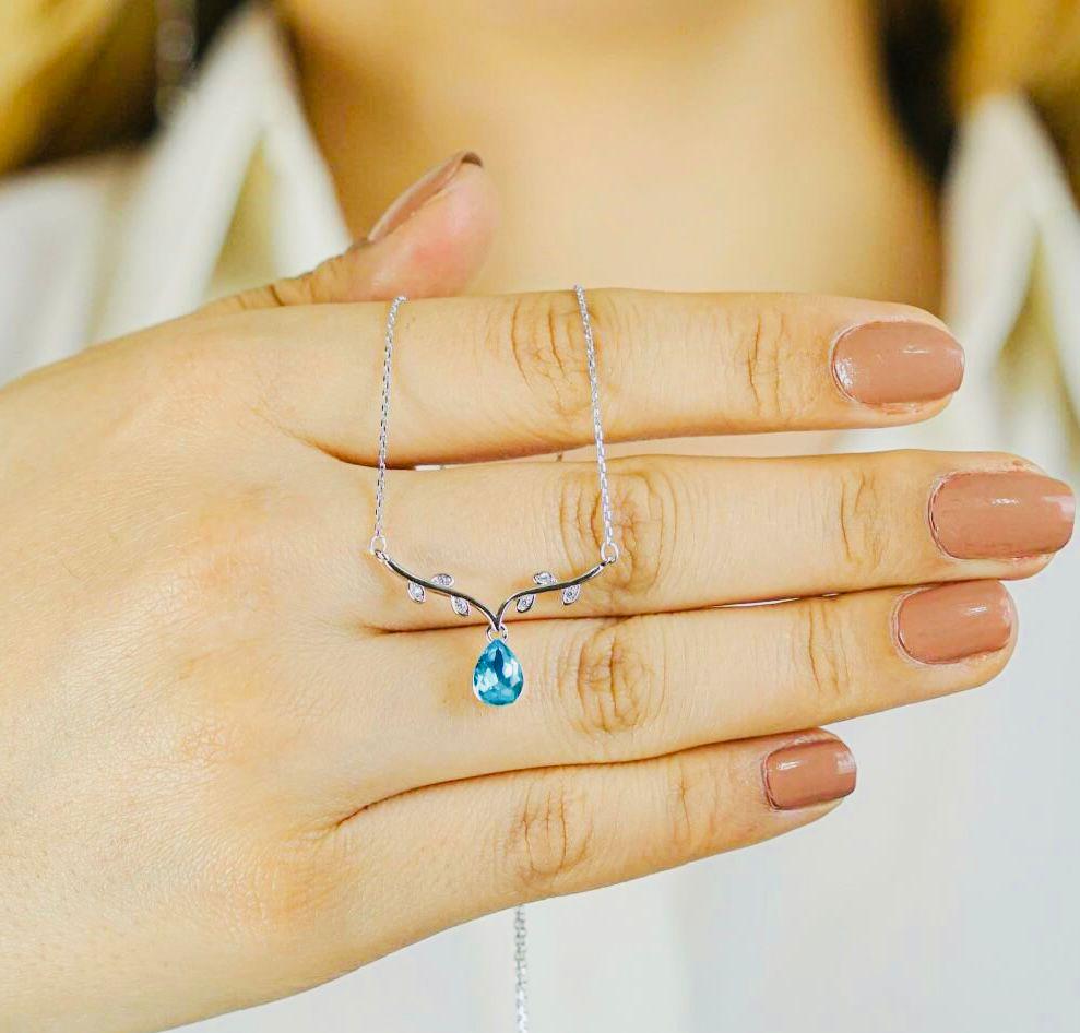 Description This elegant Leaf Branch Necklace with Blue Teardrop and White Zircon stones is crafted from 925 sterling silver and plated in rose gold for a radiant shine. A nature-inspired design symbolizing beauty and elegance, perfect for everyday wear or as a thoughtful gift for someone special.