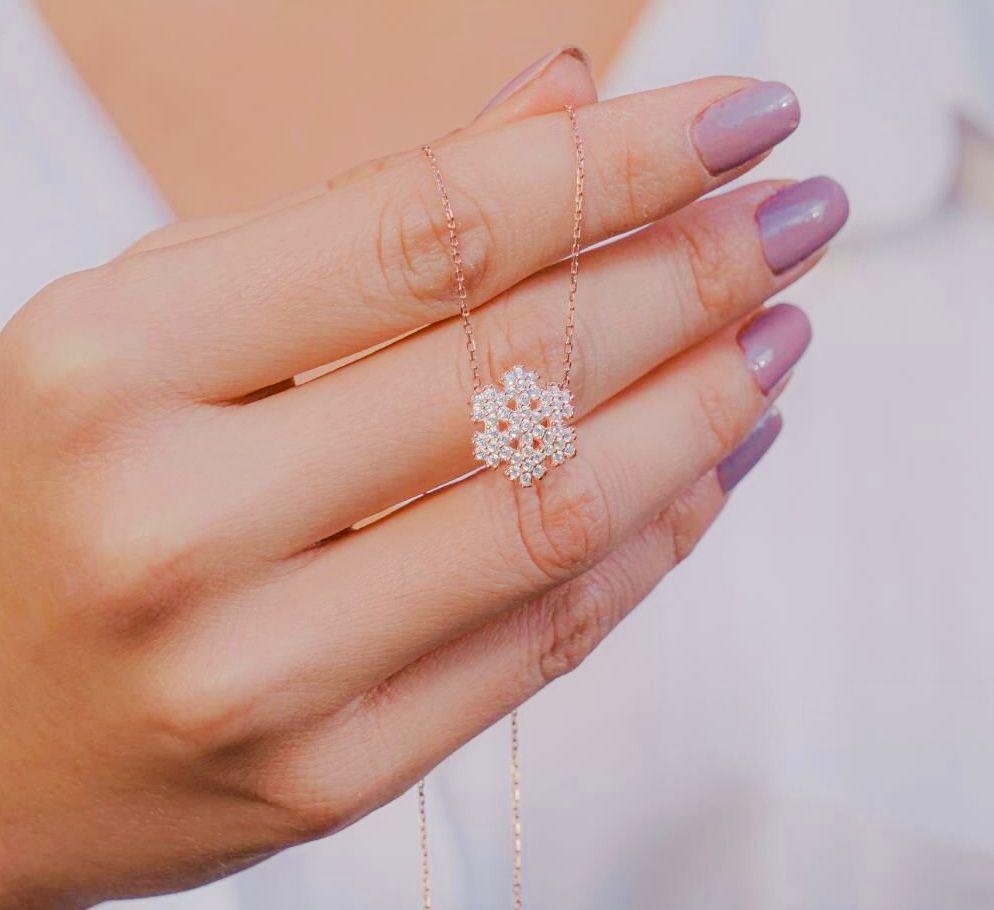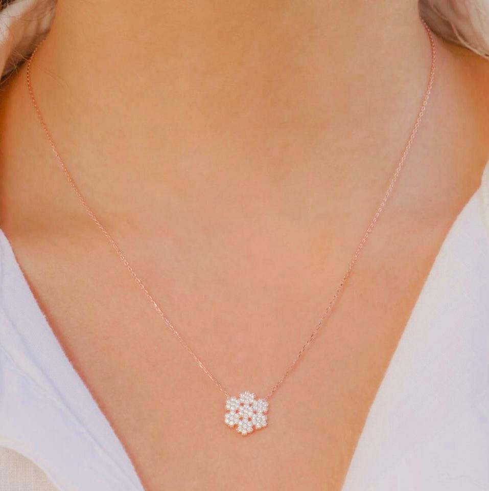 Description This elegant Snowflake Necklace is crafted from 925 sterling silver and plated in rose gold for a radiant shine. A timeless design symbolizing purity and uniqueness, perfect for everyday wear or as a thoughtful winter-inspired gift.