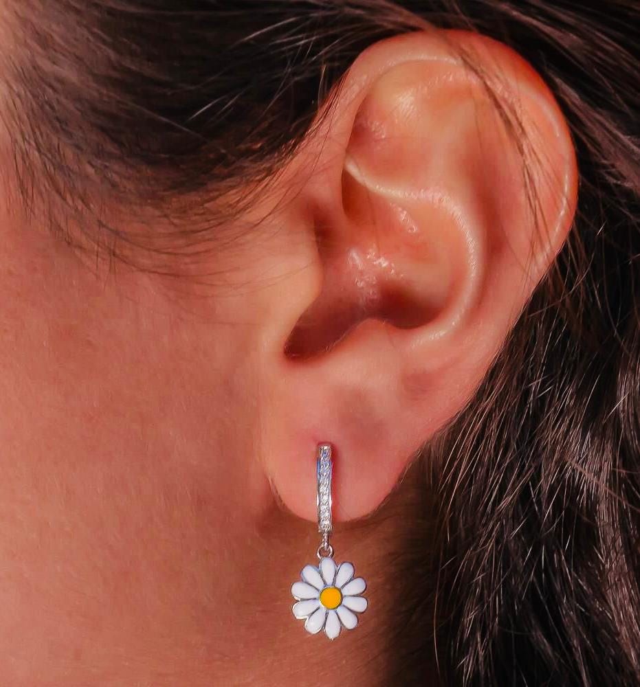 Description These elegant Daisy Drop Earrings with White Zircon stones are crafted from 925 sterling silver and plated in rhodium for extra shine. A delicate floral-inspired design symbolizing purity and beauty, perfect for everyday wear or as a thoughtful gift for someone special.