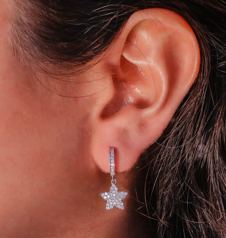 Description These elegant Star Drop Earrings with Zircon stones are crafted from 925 sterling silver and plated in rhodium for a brilliant shine. A celestial-inspired design that adds sparkle and elegance, perfect for everyday wear or as a thoughtful gift.