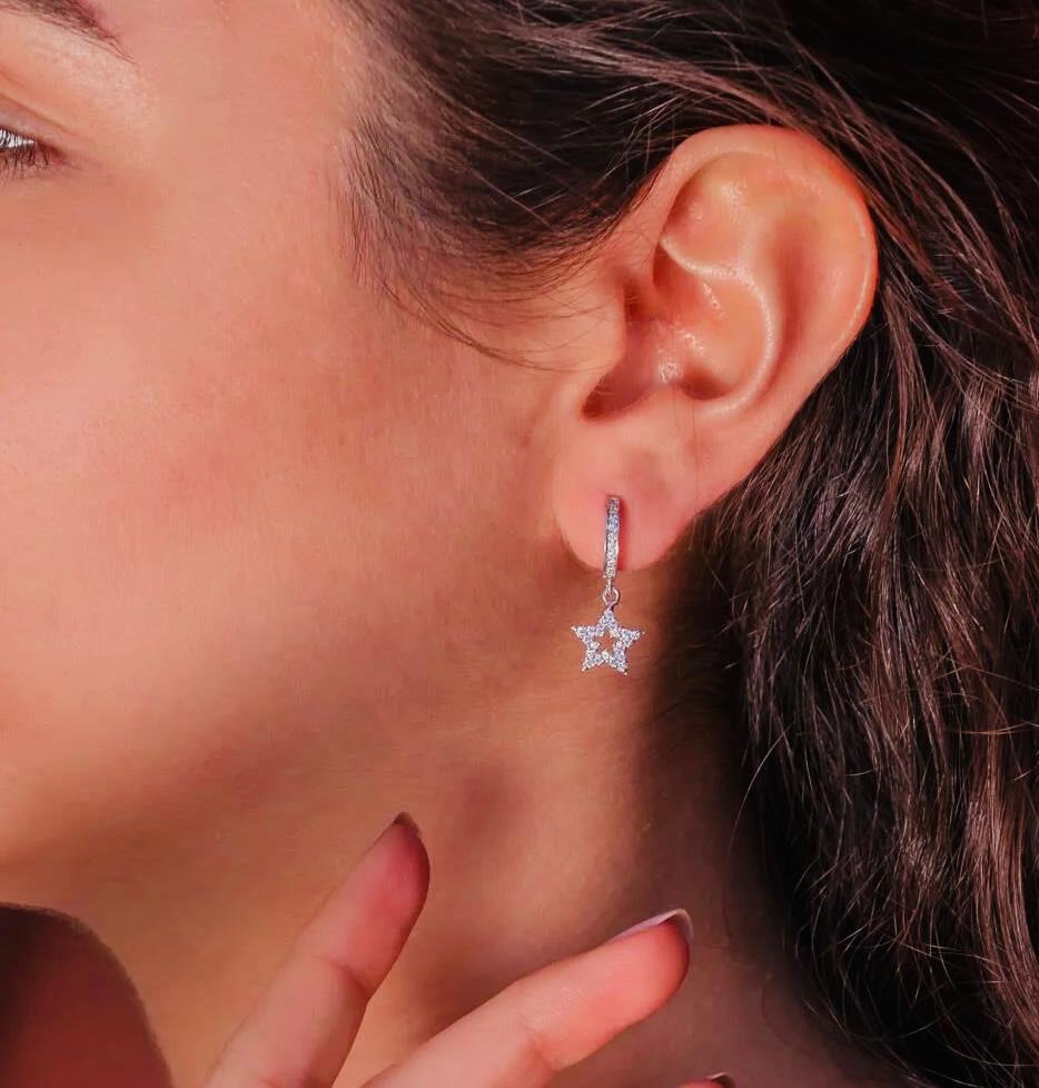 Description These elegant Star Drop Earrings with White Baguette Zircon stones are crafted from 925 sterling silver. A sparkling design that adds charm and brilliance, perfect for everyday wear or as a thoughtful gift for someone special.