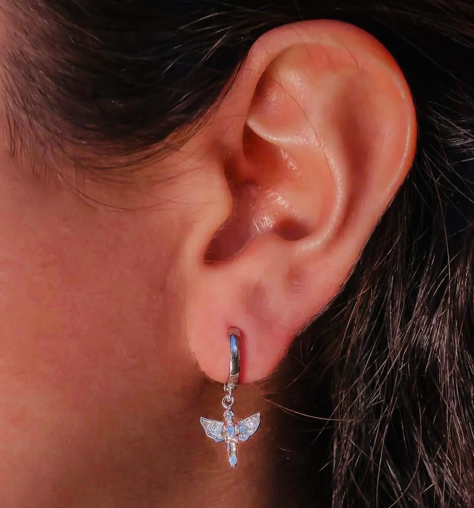 Description These elegant Angel Drop Earrings with Zircon stones are crafted from 925 sterling silver and plated in rhodium for a brilliant shine. A meaningful design symbolizing protection and purity, perfect for everyday wear or as a thoughtful gift for someone special.