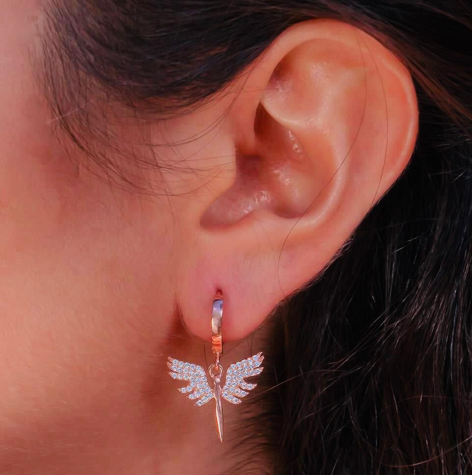 Description These elegant Angel Drop Earrings with Zircon stones are crafted from 925 sterling silver and plated in rose gold for a radiant shine. A meaningful design symbolizing purity and protection, perfect for everyday wear or as a thoughtful gift for someone special.