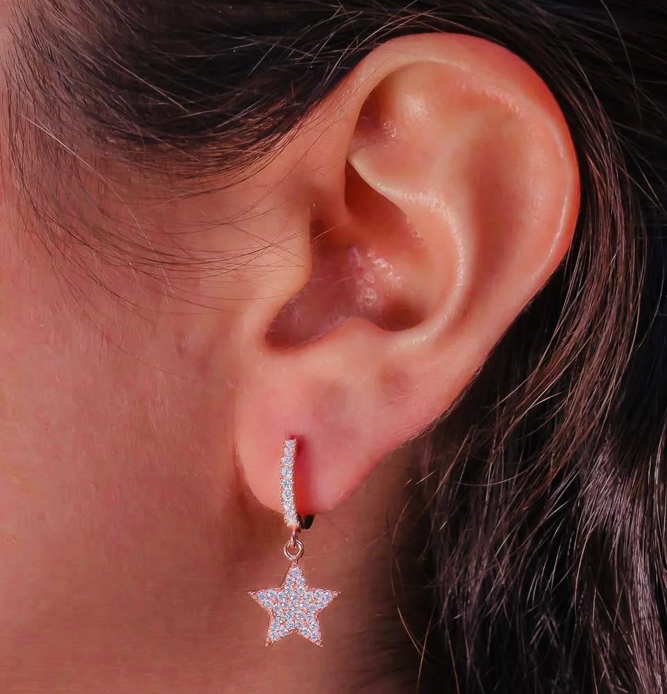925 Sterling Silver Star Drop Earrings with Zircon – Rose Gold Plated
