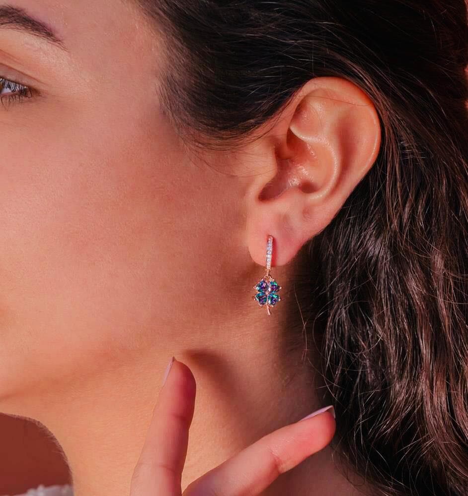 Description These elegant Clover Heart Drop Earrings with Mystic Topaz are crafted from 925 sterling silver and plated in rose gold for a radiant shine. A meaningful design combining love and luck with the unique sparkle of mystic topaz, perfect for everyday wear or as a thoughtful gift for someone special.