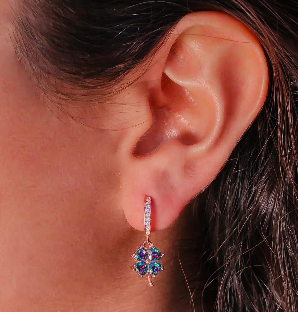 925 Sterling Silver Clover Heart Drop Earrings with Mystic Topaz – Rose Gold Plated