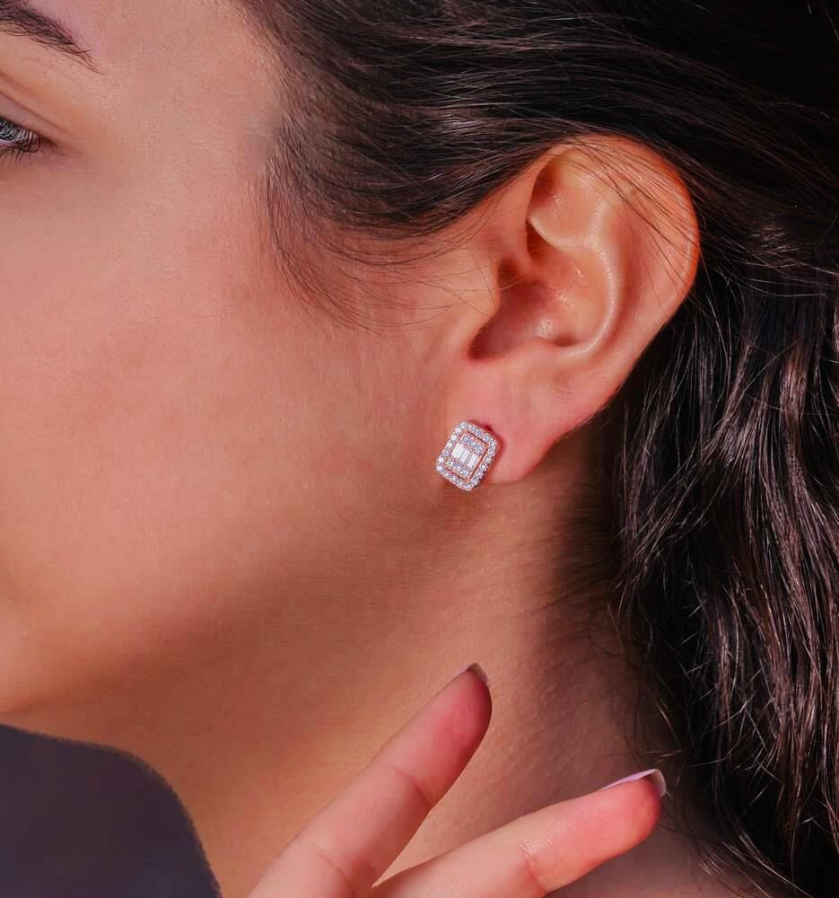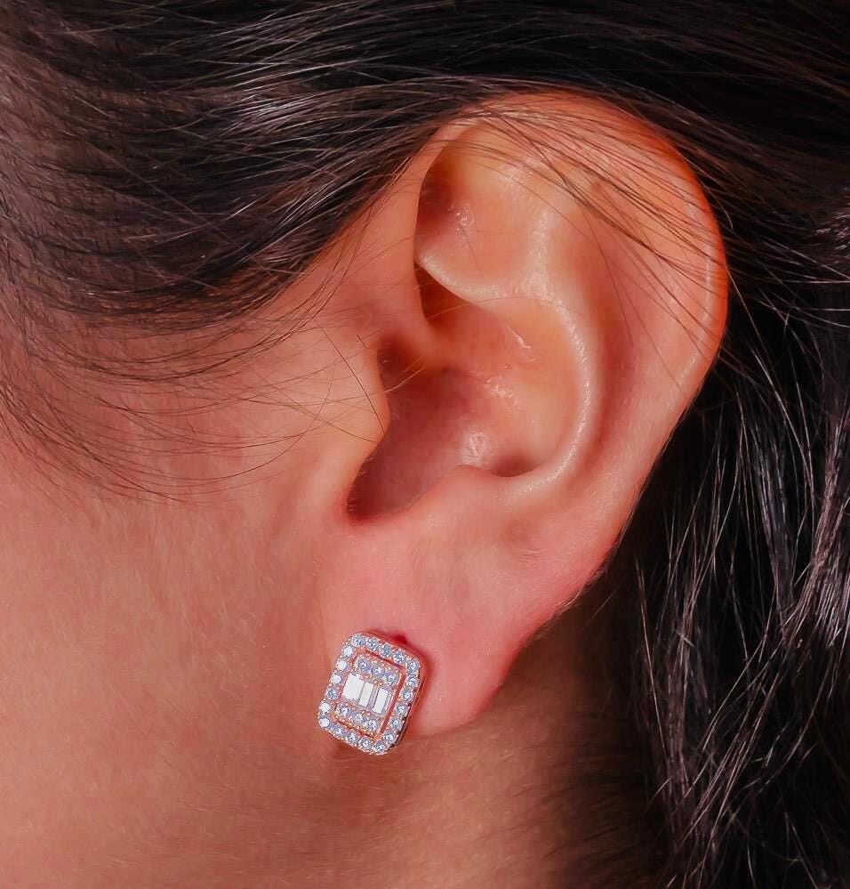 Product Details • Material: 925 sterling silver • Stone: Baguette zircon • Plating: Rose gold • Weight: 3.2 g • Size: 9 x 11 mm • Comes as a pair in a gift package