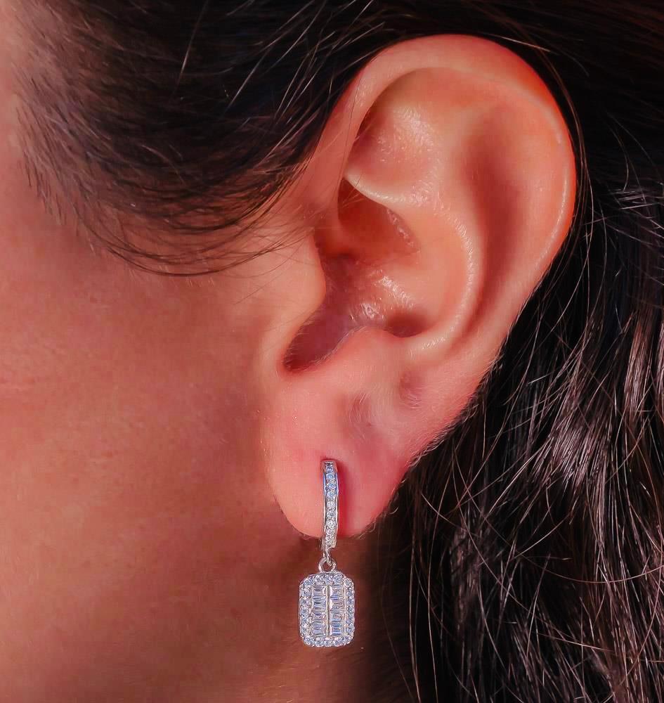 Product Details • Material: 925 sterling silver • Stone: Baguette zircon • Plating: Rhodium • Weight: 2.4 g • Size: 0.7 cm x 0.9 cm • Comes as a pair in a gift package