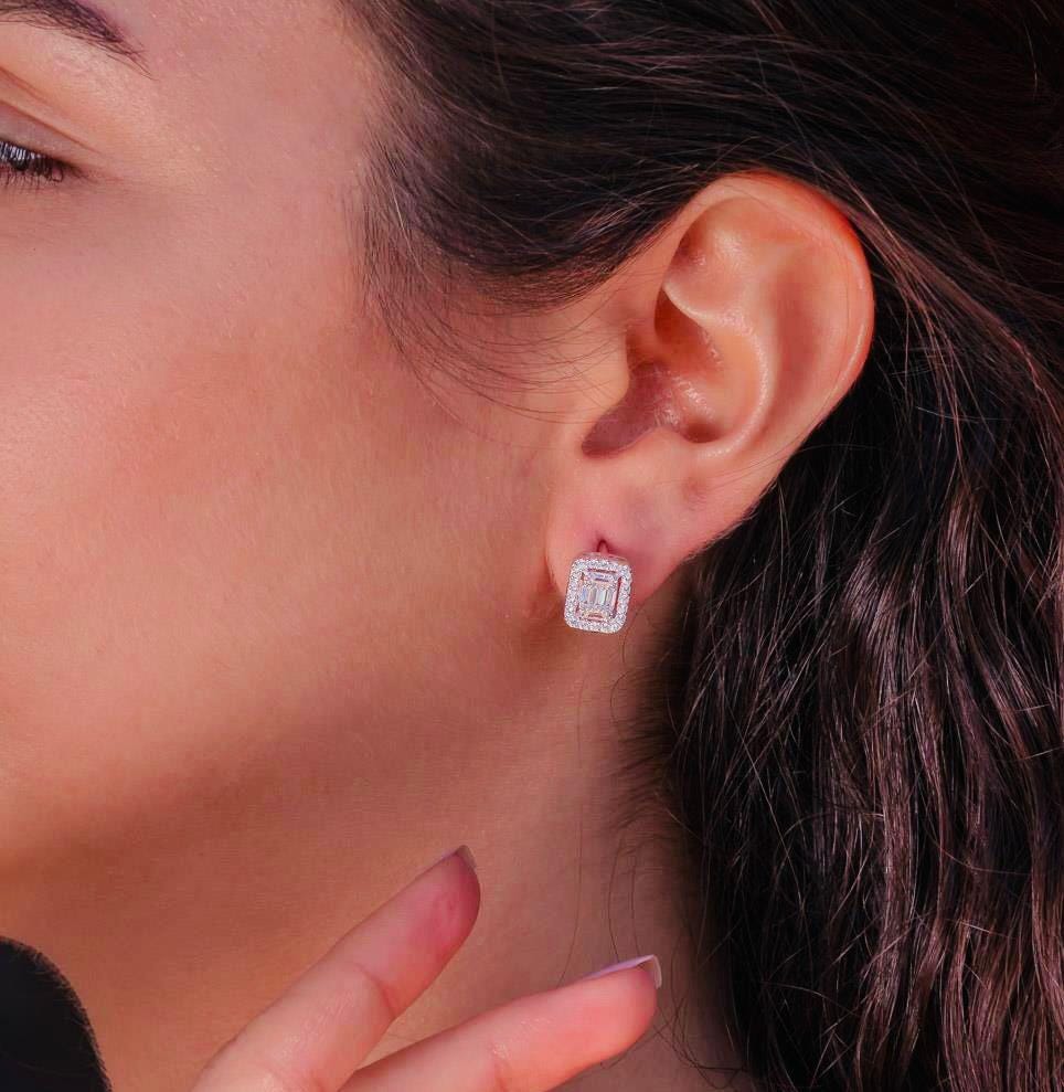Product Details • Material: 925 sterling silver • Stone: Baguette zircon • Plating: Rhodium • Weight: 3.7 g • Size: 11 x 9 mm • Comes as a pair in a gift package