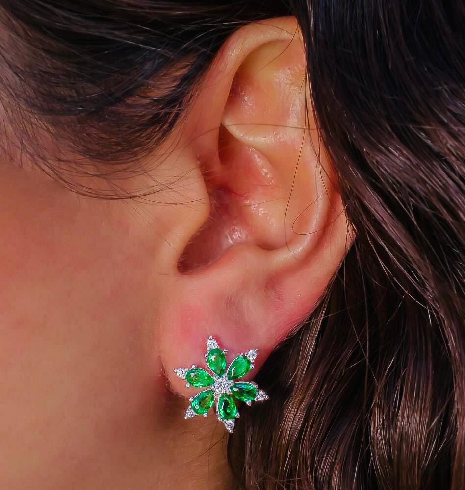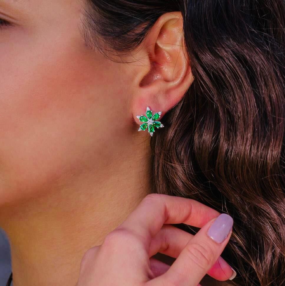 925 Sterling Silver Lotus Flower Earrings with Green Zircon – Star Design
