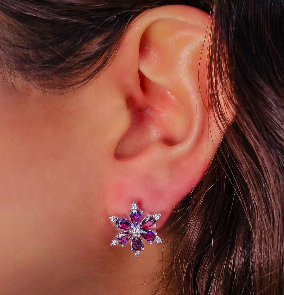 Description These elegant Lotus Flower Earrings with Purple and White Zircon stones are crafted from 925 sterling silver. A unique floral-inspired design symbolizing purity and beauty, perfect for everyday wear or as a thoughtful gift.