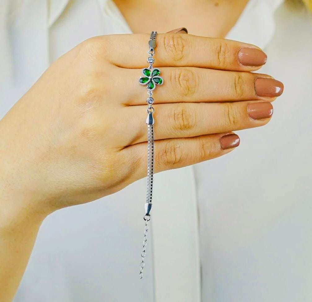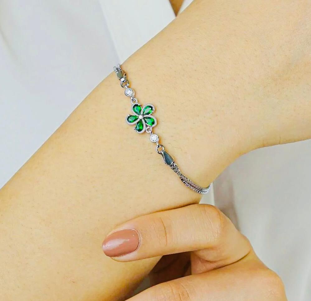 Description This elegant Flower Bracelet is crafted from 925 sterling silver and features a stunning emerald green design. With a weight of 5.5 g and a length of 18 cm, it’s lightweight yet eye-catching, making it perfect for both daily wear and special occasions. A meaningful gift choice for someone special.