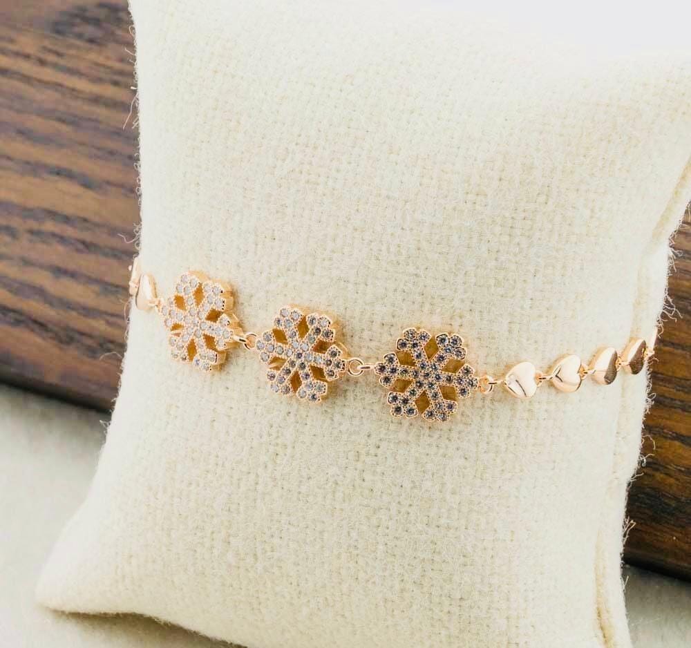 Description This stunning Snowflake Bracelet with Zircon Stones is crafted from 925 sterling silver and plated in rose gold. The snowflake symbolizes uniqueness and beauty, while sparkling zircon stones add brilliance and elegance. Perfect for daily wear or as a meaningful gift for someone special.