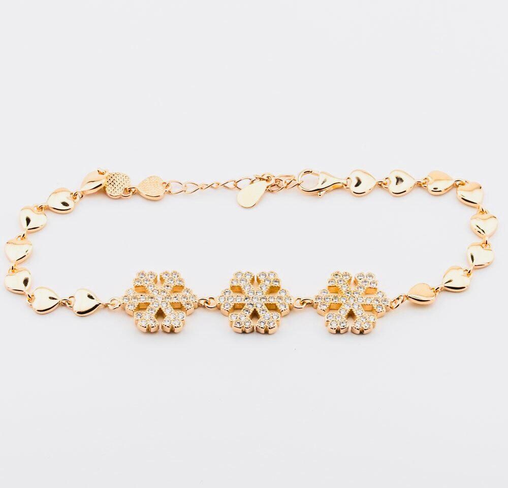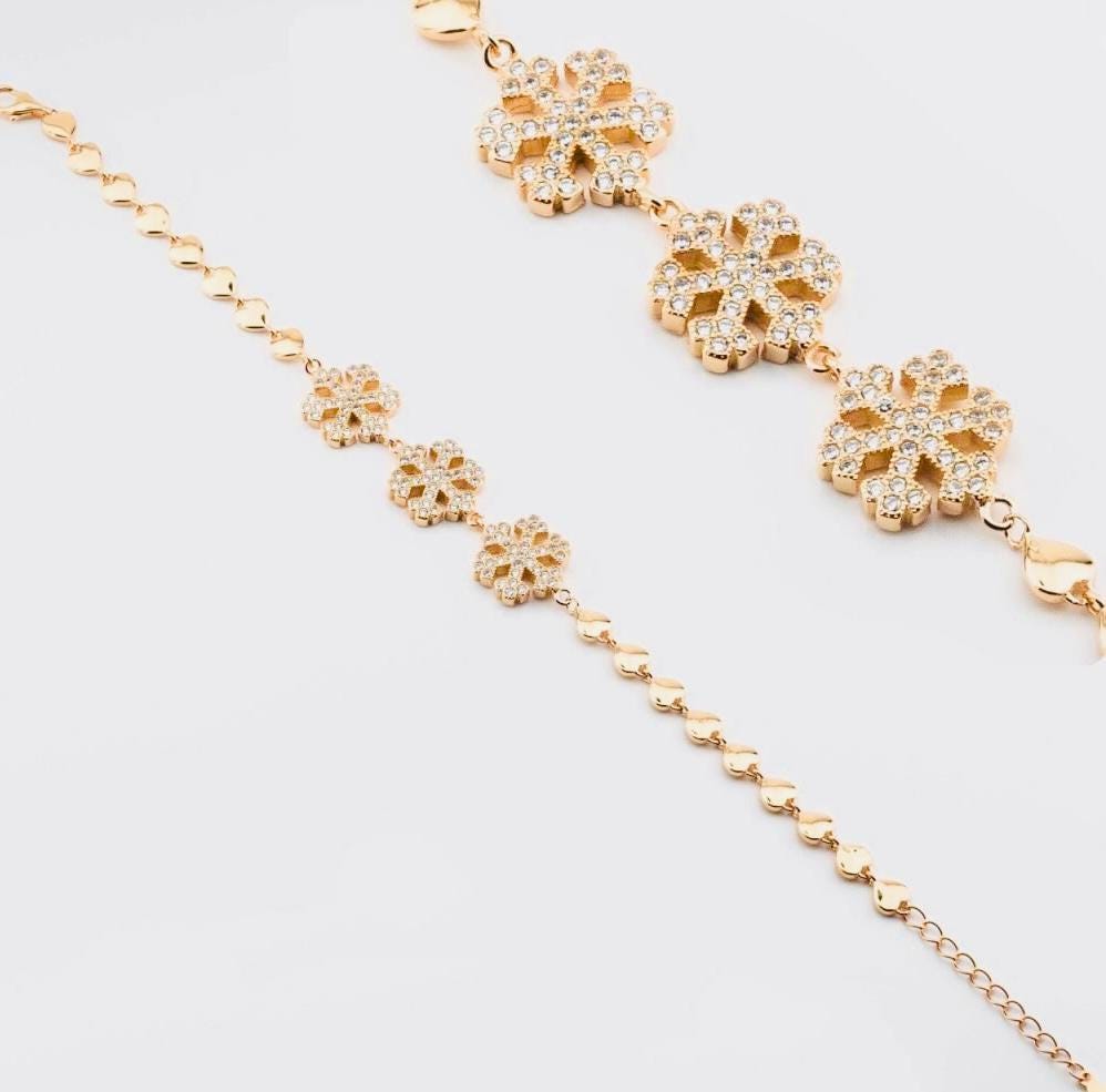 925 Sterling Silver Snowflake Bracelet with Zircon Stones – Rose Gold Plated