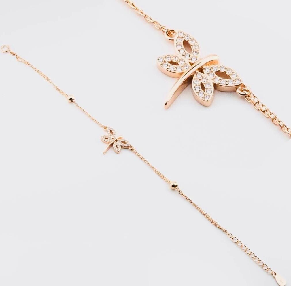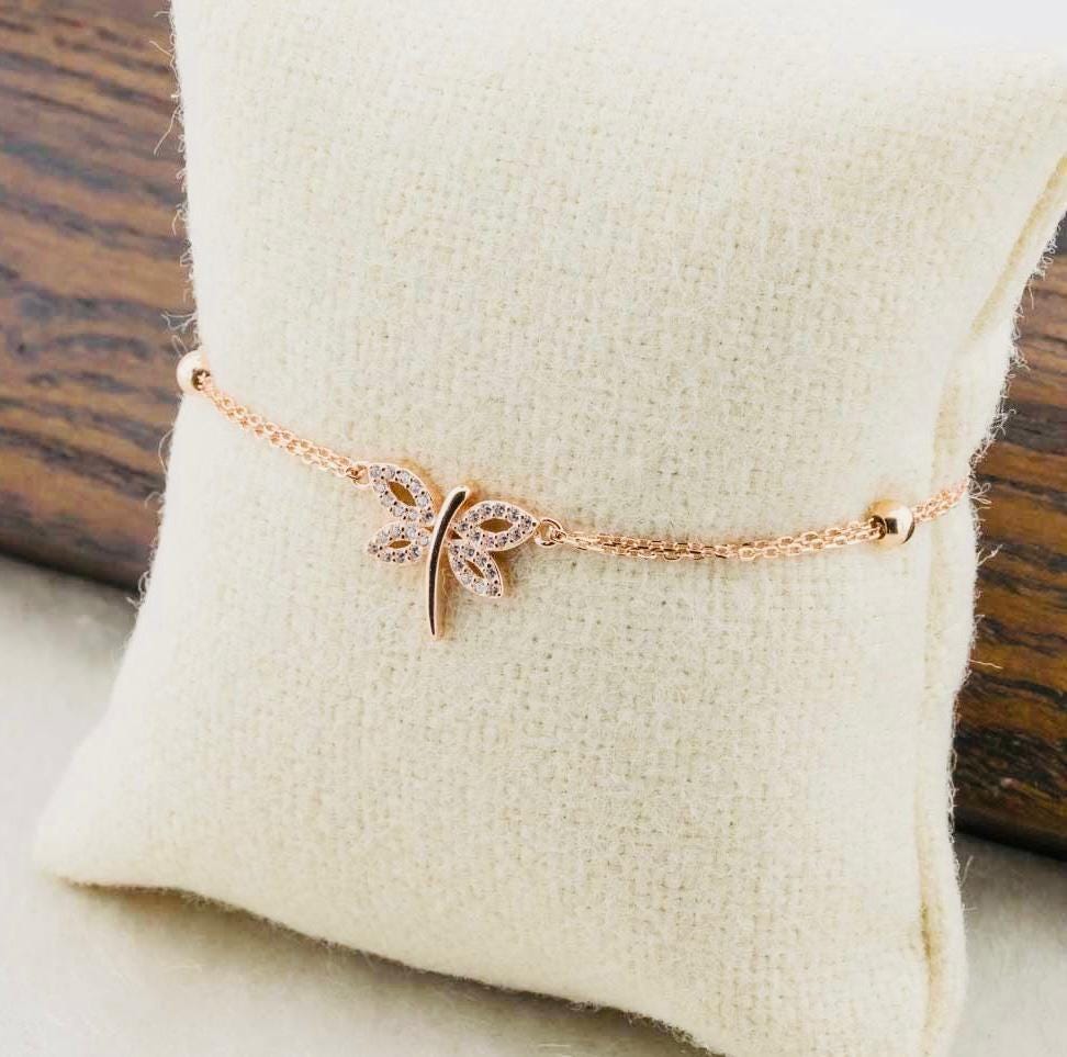 925 Sterling Silver Dragonfly Bracelet with Zircon Stones – Rose Gold Plated