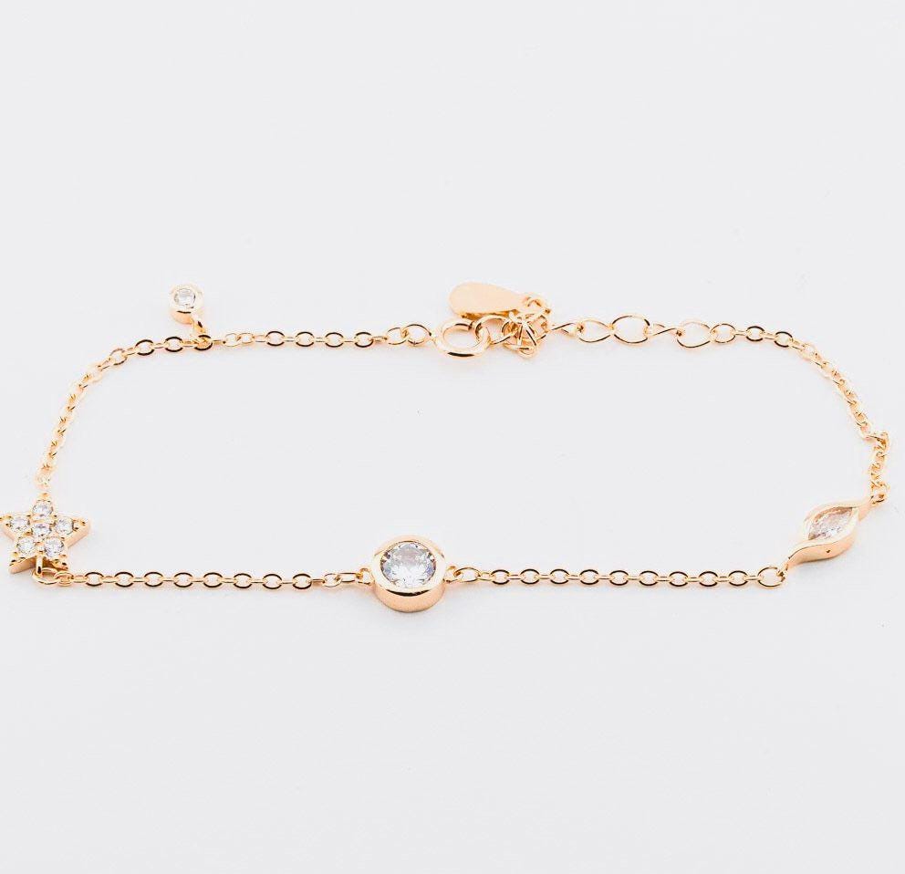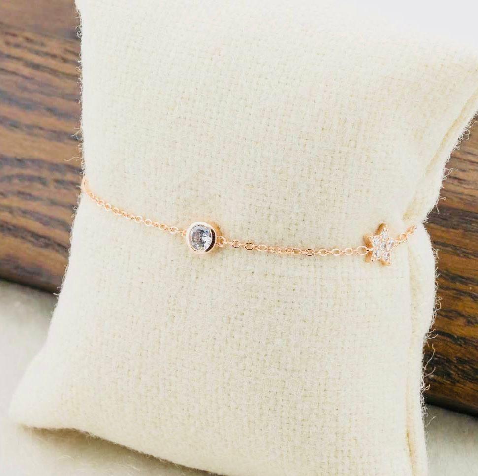 Description This elegant Star and Solitaire Bracelet with Zircon Stone is crafted from 925 sterling silver. The star symbolizes hope and inspiration, while the solitaire zircon adds a sparkling touch. Lightweight and versatile, it’s perfect for everyday wear or as a meaningful gift.
