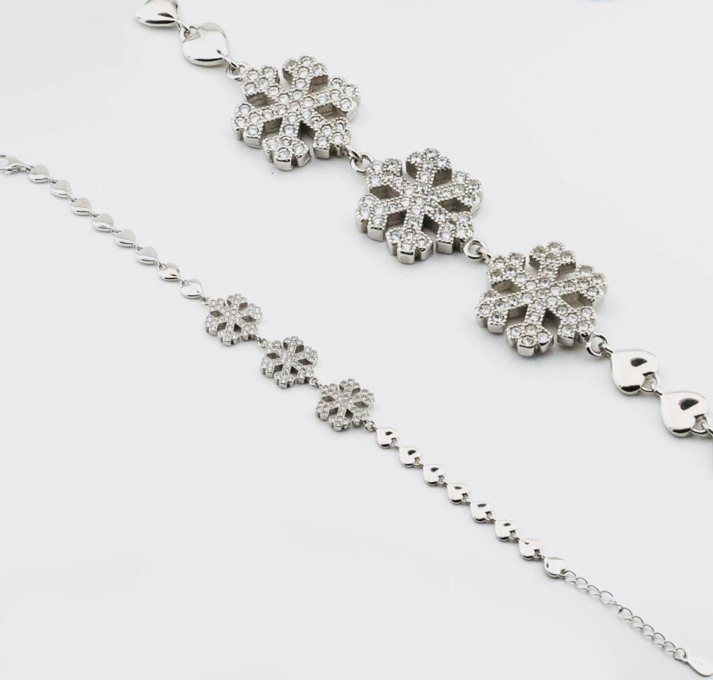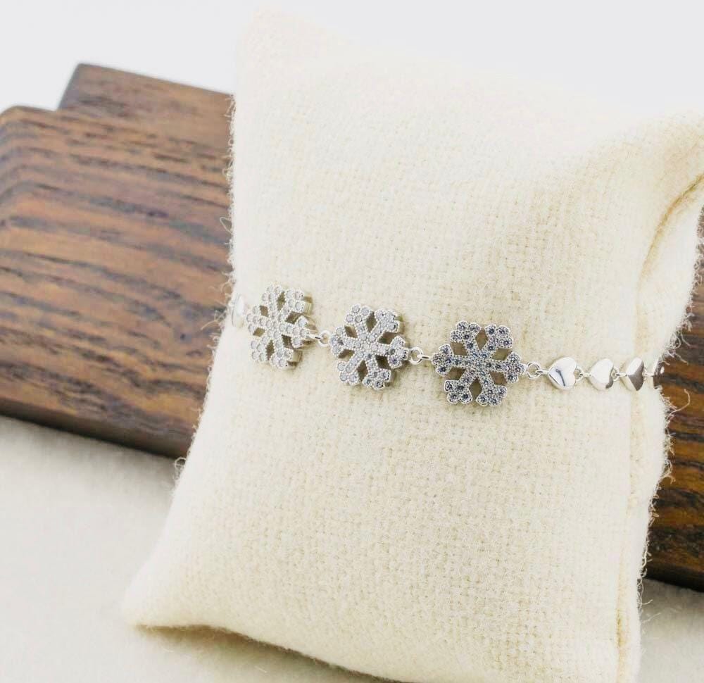 Description This elegant Snowflake and Heart Bracelet is crafted from 925 sterling silver. The snowflake symbolizes uniqueness, while the heart represents love. With its meaningful design and sparkling zircon accents, it’s perfect for everyday wear or as a thoughtful gift.