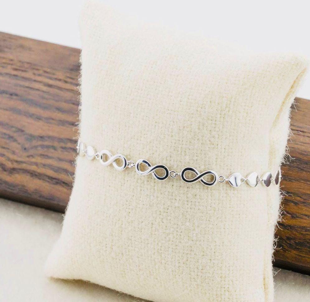 Description This meaningful Infinity Heart Bracelet with Zircon Stones is crafted from 925 sterling silver. The infinity symbol represents eternal love and connection, while the heart adds a touch of romance. Accented with sparkling zircon stones, it’s perfect for everyday wear or as a thoughtful gift.