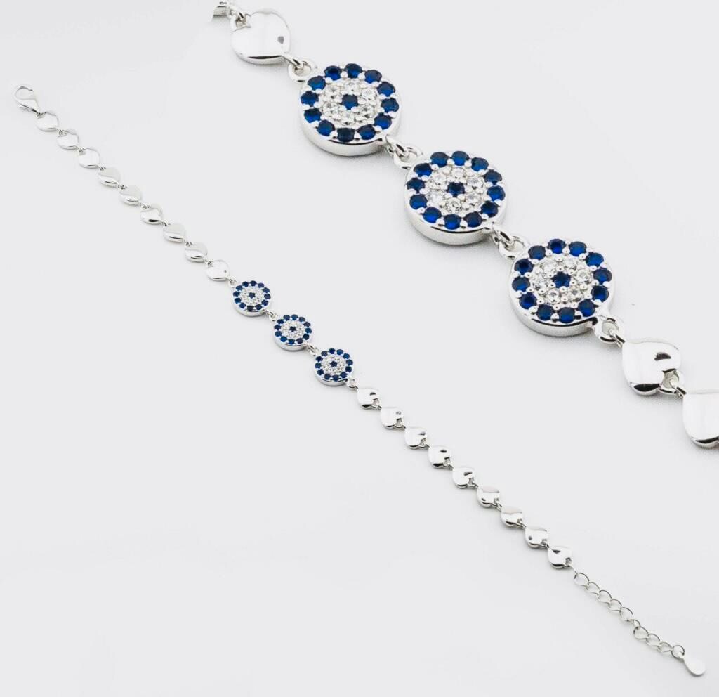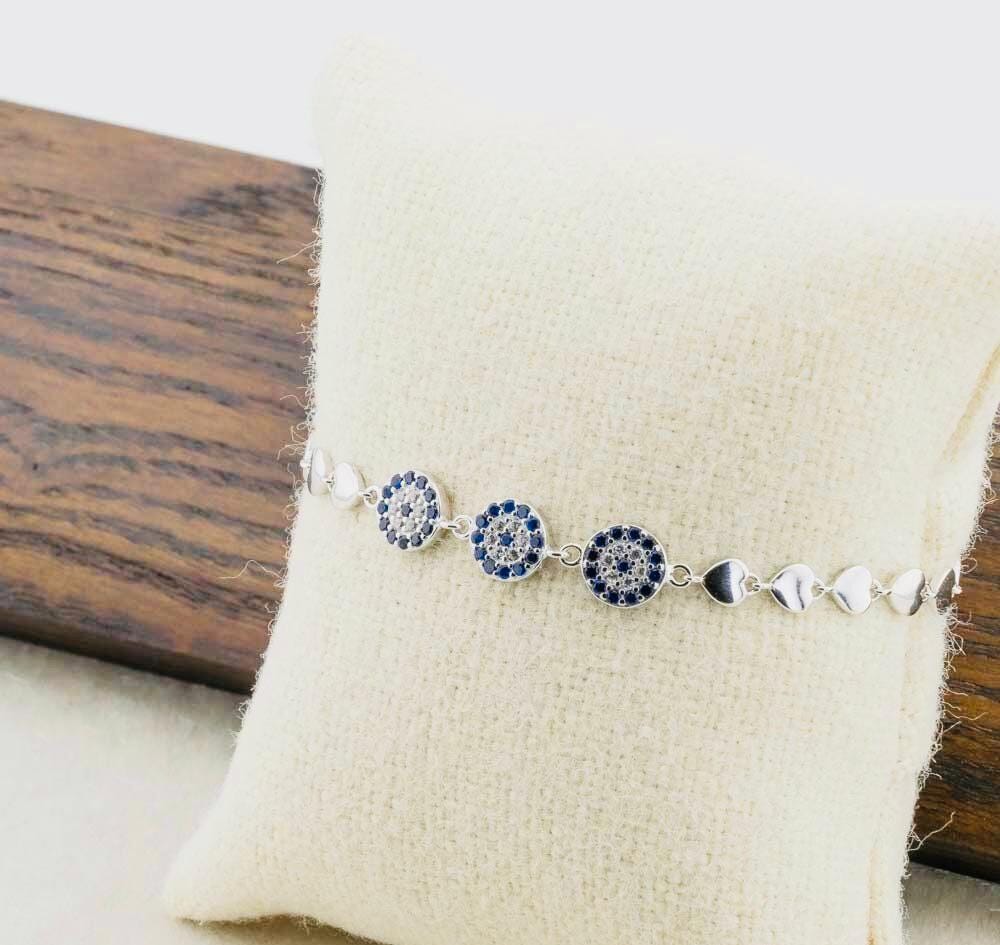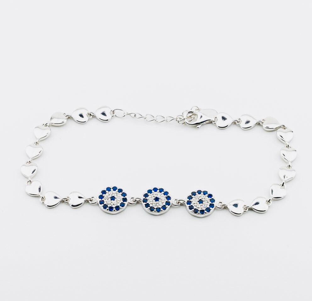 Description This elegant Evil Eye and Heart Bracelet is crafted from 925 sterling silver. Featuring a protective evil eye and a heart symbolizing love, it combines meaning with beauty. Perfect for everyday wear or as a thoughtful gift that carries both elegance and symbolism.