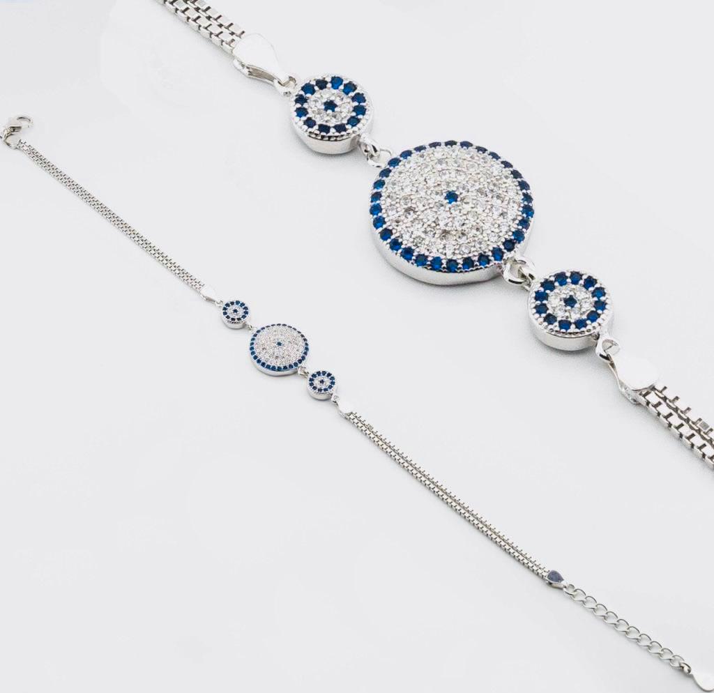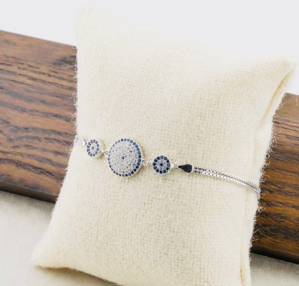 Description This stylish Evil Eye Bracelet with Zircon Stones is crafted from 925 sterling silver. Featuring the protective evil eye design and sparkling zircon stones, it’s a perfect blend of elegance and symbolism. Ideal for everyday wear or as a meaningful gift for someone special.