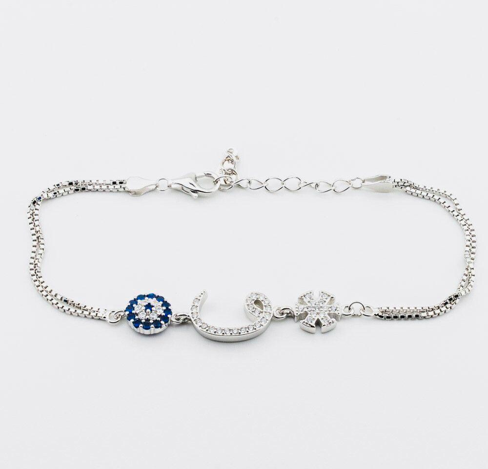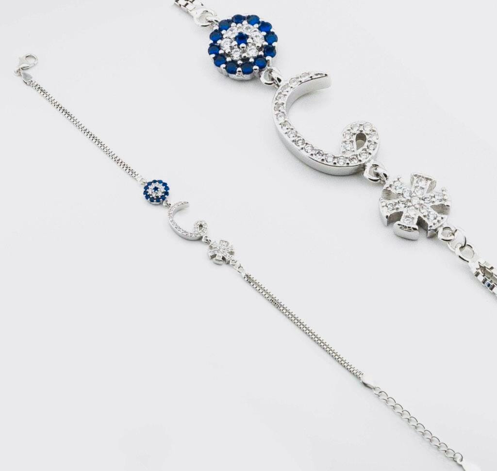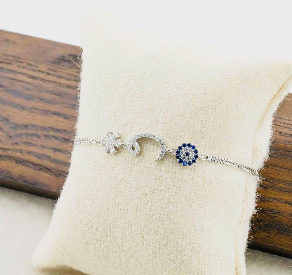 Description This elegant Evil Eye Snowflake Bracelet with Vav Motif is crafted from 925 sterling silver. Combining meaningful symbols, it represents protection, elegance, and spirituality. Perfect for everyday wear or as a thoughtful gift, this unique bracelet blends style with significance.