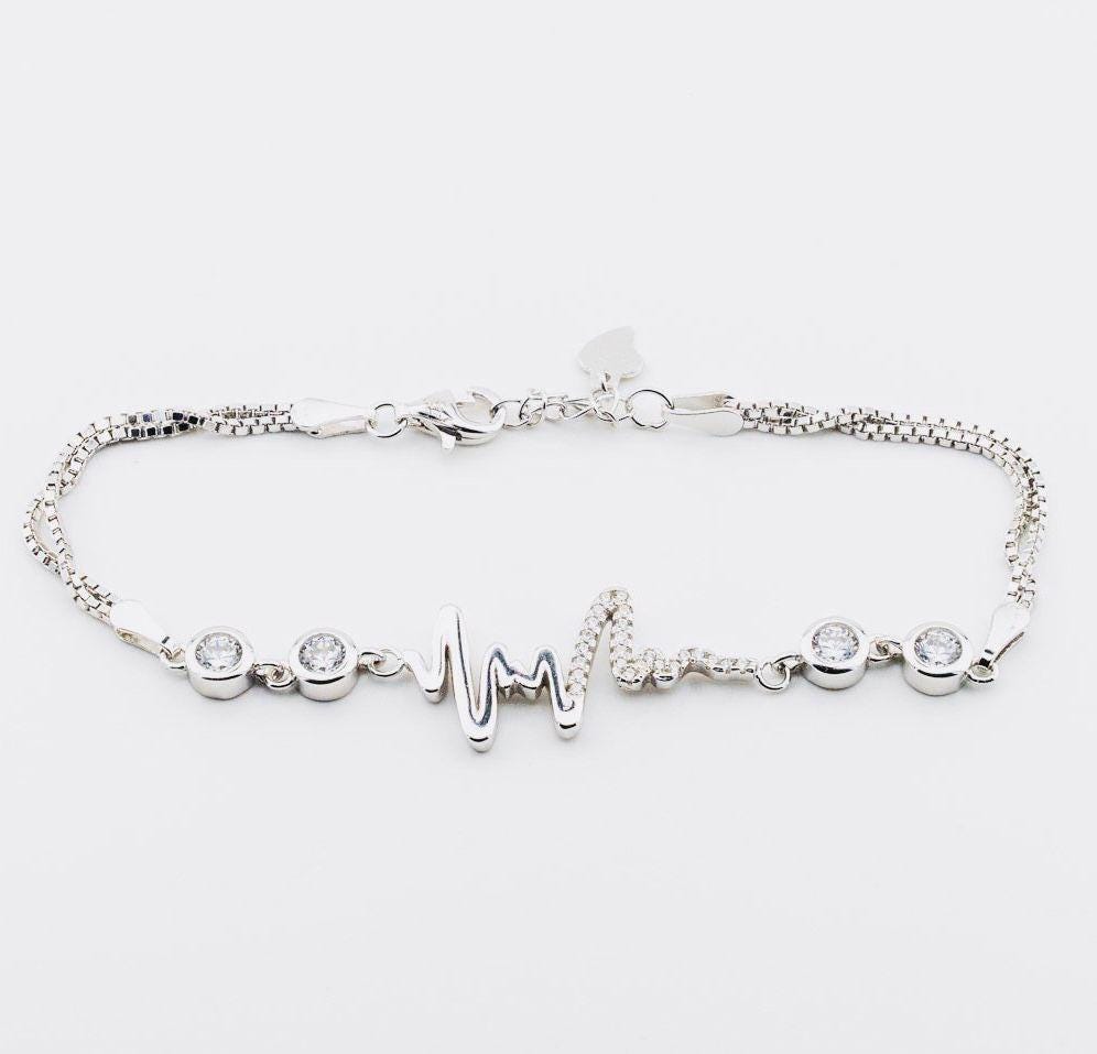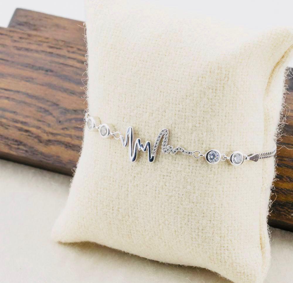 Description This elegant Heartbeat Bracelet with Zircon Stones is crafted from 925 sterling silver. Featuring a meaningful heartbeat design, it symbolizes love and life energy. With its delicate zircon details, this bracelet is perfect for everyday wear or as a thoughtful gift for someone special.
