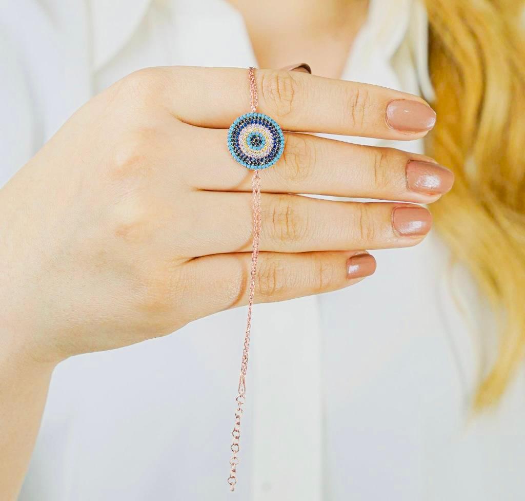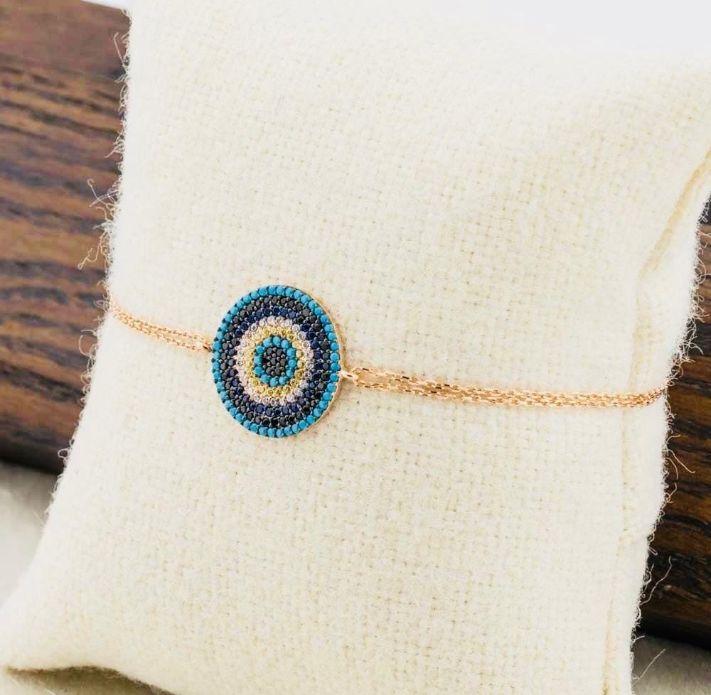 925 Sterling Silver Evil Eye Bracelet – Rose Gold Plated