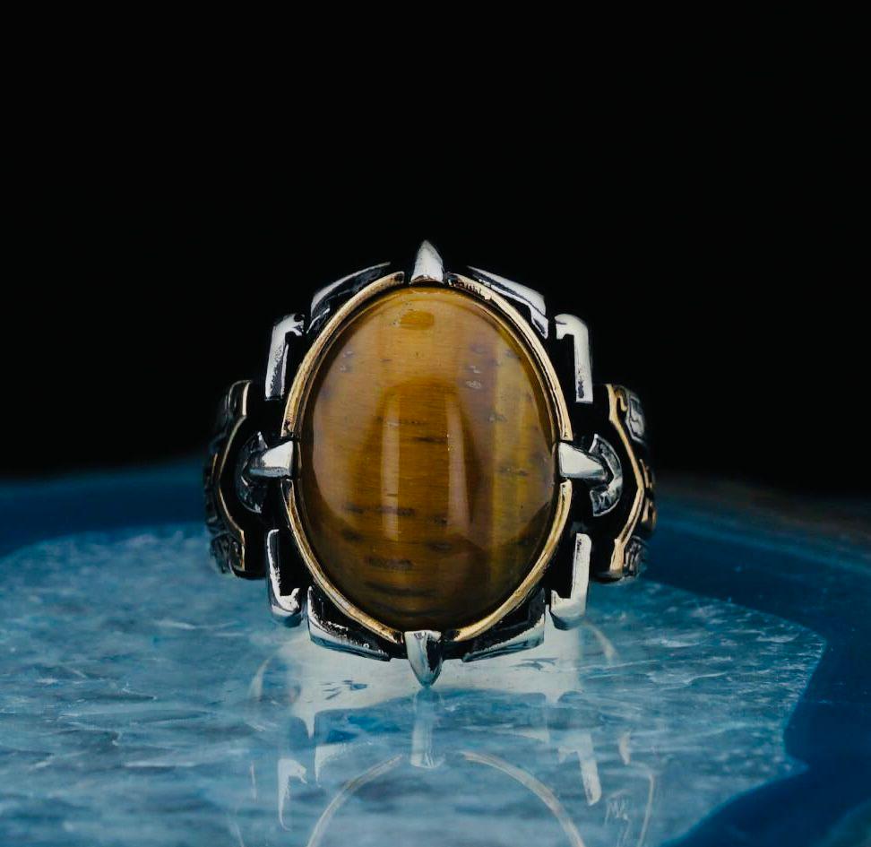 Product Details: • Material: 925 sterling silver • Stone: Tiger Eye • Weight: 17.6 g (may vary depending on size) • Production Type: Mold casting • Comes with a ring box and cleaning cloth
