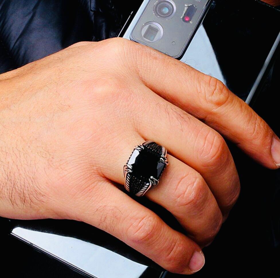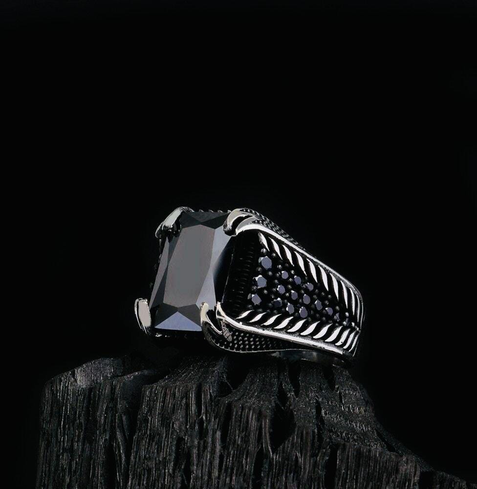 Description: This elegant men’s ring is crafted from 925 sterling silver and features a bold black zircon stone enhanced with shimmering micro stone details on the sides. Handmade with fine craftsmanship, it’s a perfect accessory for daily wear or formal occasions. Delivered in a gift box, making it a great choice for a stylish gift.