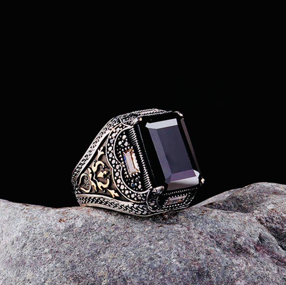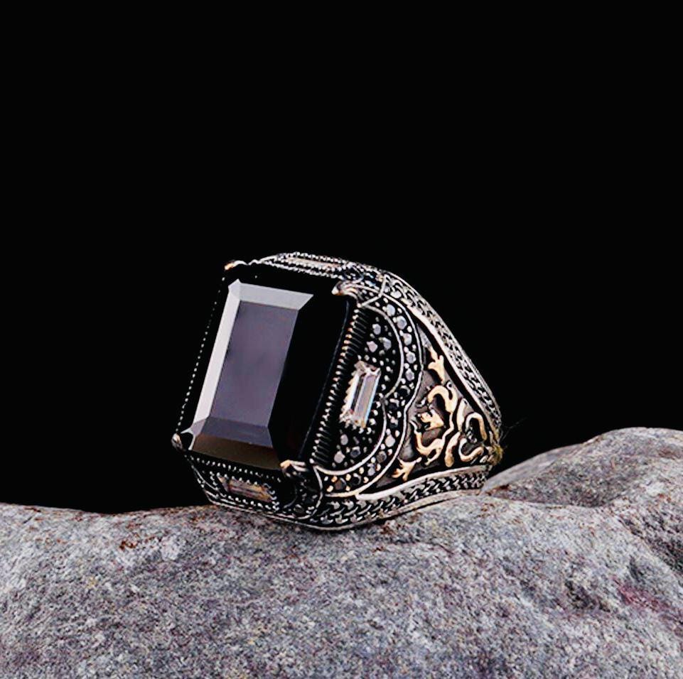 Product Details: • Material: 925 sterling silver • Stone: Black zircon • Stone Size: 12 x 16 mm • Average Weight: 15.3 g • Comes with a ring box and cleaning cloth • Handmade (weight may vary ±10%)