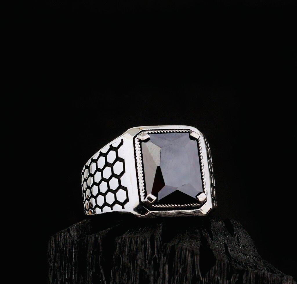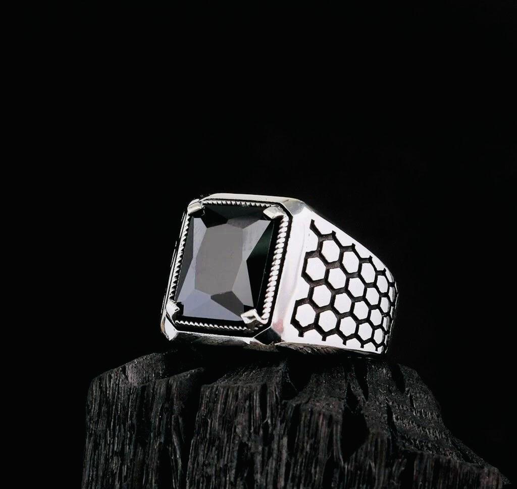 Description: This unique Honeycomb Design Men’s Ring is crafted from 925 sterling silver and features a sparkling zircon stone at its center. With its bold and masculine style, it’s the perfect accessory for everyday wear or special occasions. Delivered in a gift-ready box with a cleaning cloth, this handcrafted ring makes a meaningful gift for yourself or a loved one.