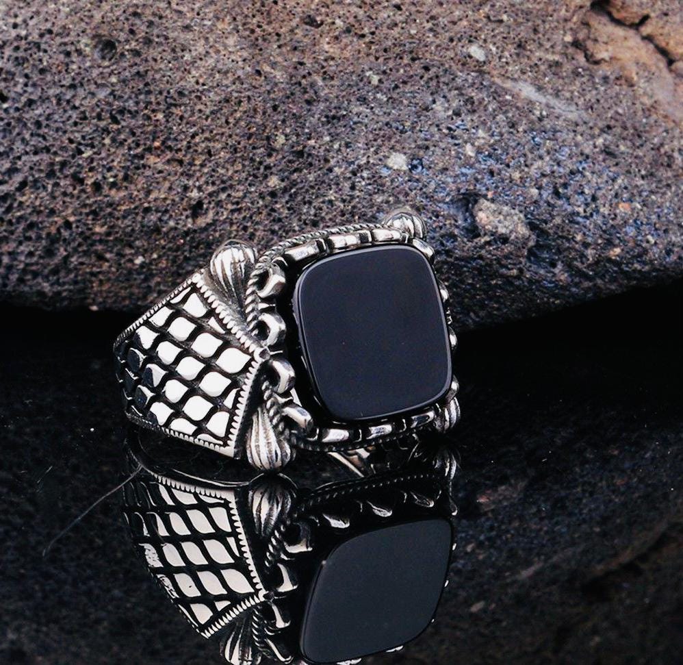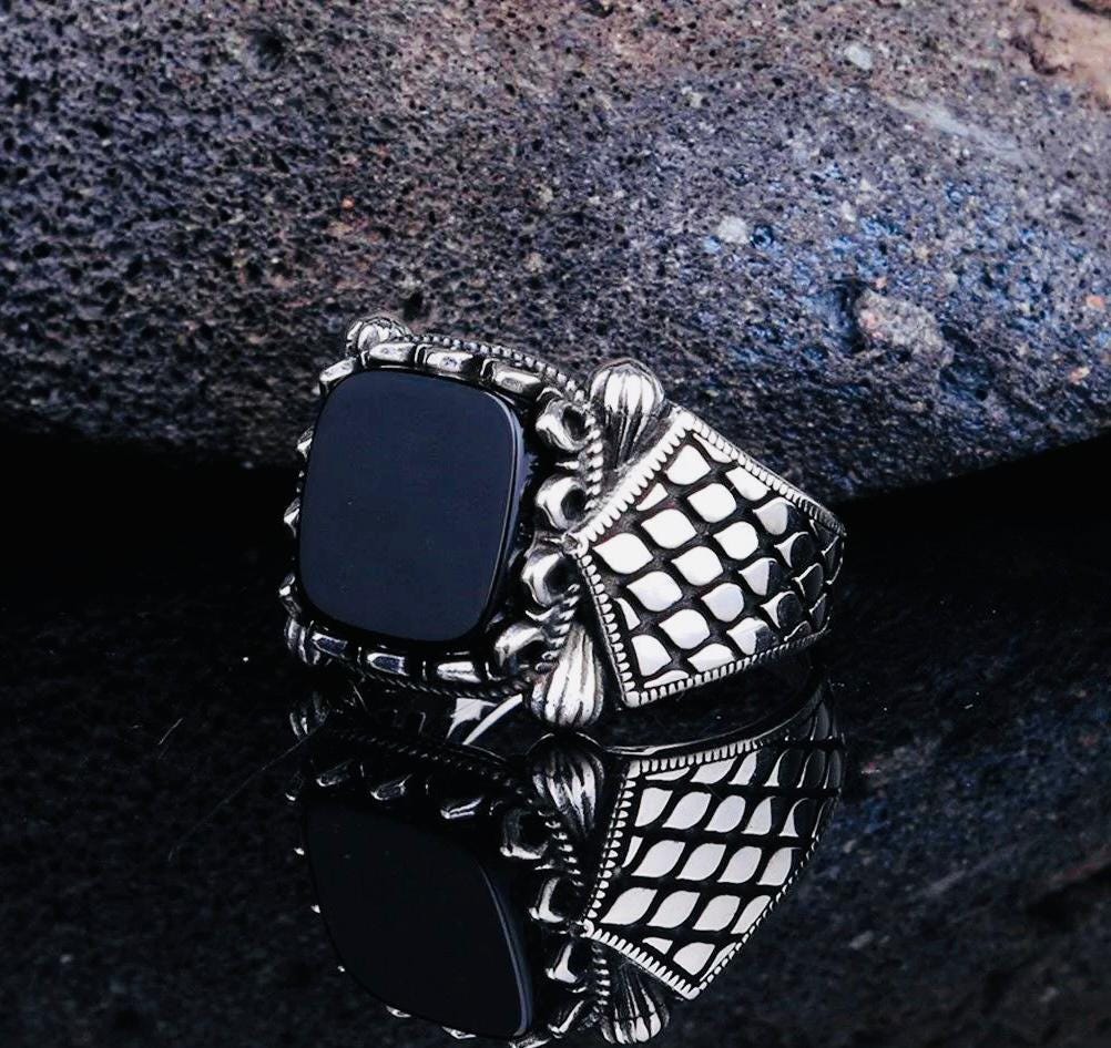 Product Details • Material: 925 sterling silver • Stone: Onyx • Average Weight: 7.4 g • Comes with ring box and cleaning cloth • Handmade – weight may vary by ±10%