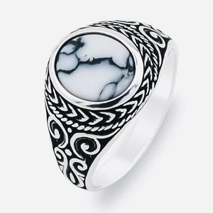 925 Sterling Silver Men’s Ring with Red Zircon Stone – Micro Detail Design