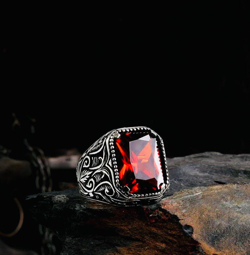 Description This handcrafted men’s ring features a striking red zircon stone, set in solid 925 sterling silver. With a weight of 13 g and a 12 x 16 mm stone, it combines boldness and elegance, making it a powerful statement accessory. Delivered in a ring box with a cleaning cloth, it’s also a perfect gift for someone special.