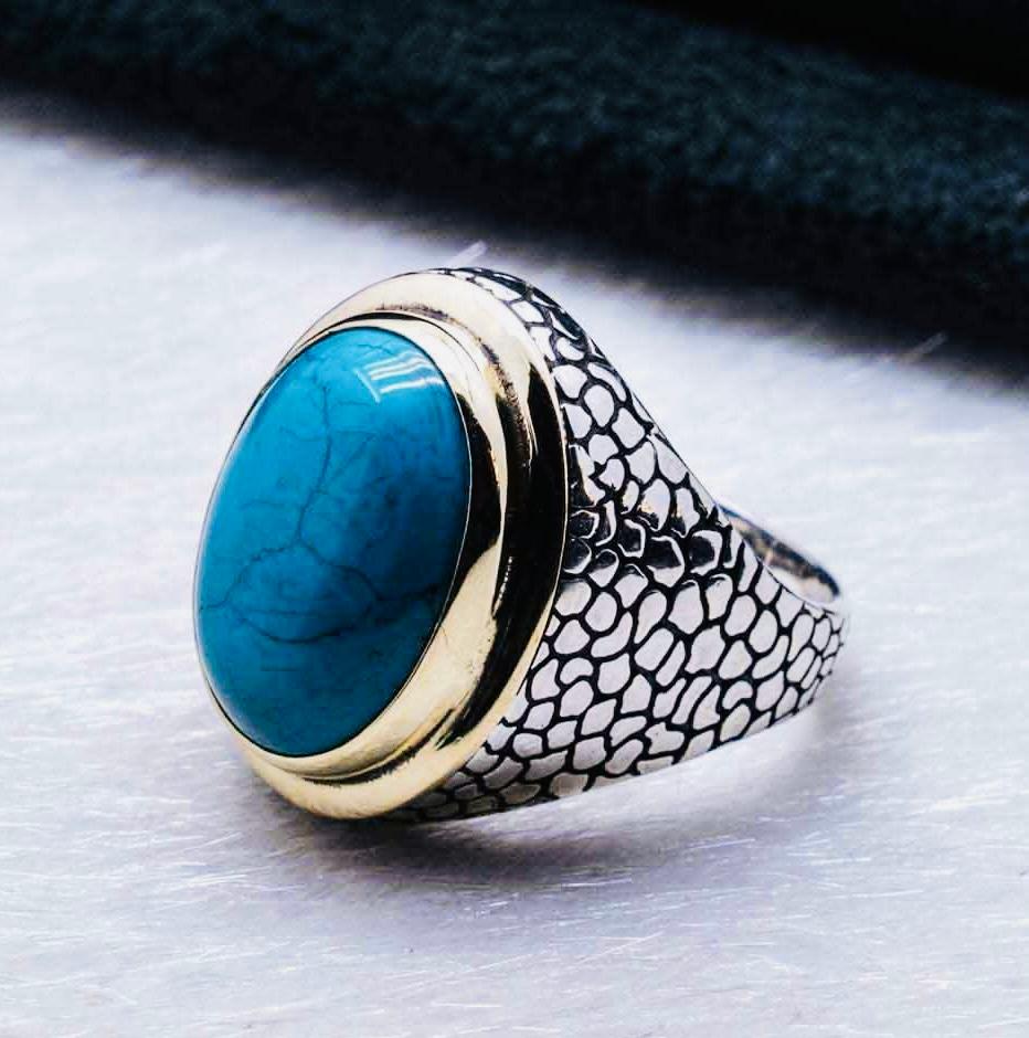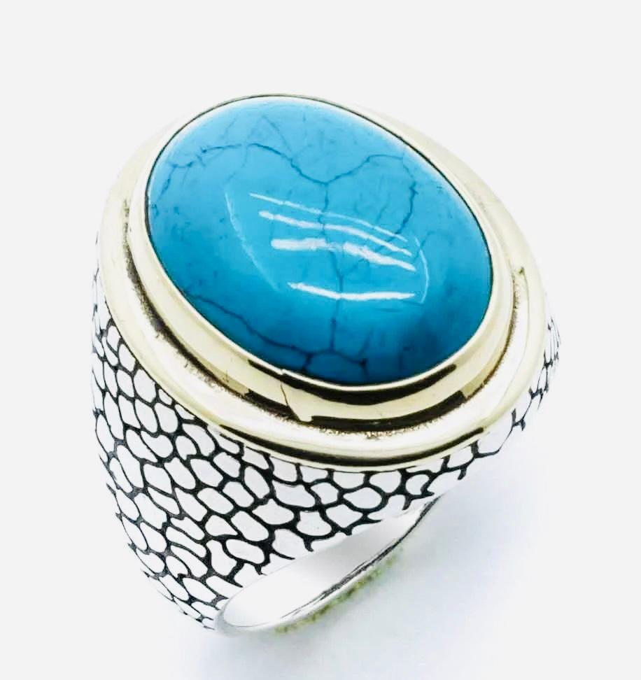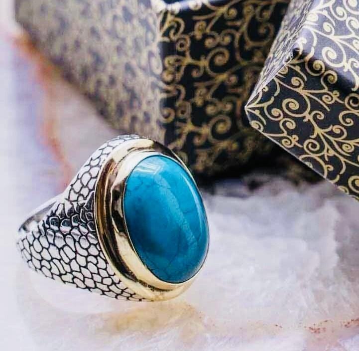 Description: This men’s ring is crafted from 925 sterling silver and features a striking turquoise stone. Known for its calming and protective energy, turquoise makes this piece both stylish and meaningful. Perfect for everyday wear or as a unique gift for him.